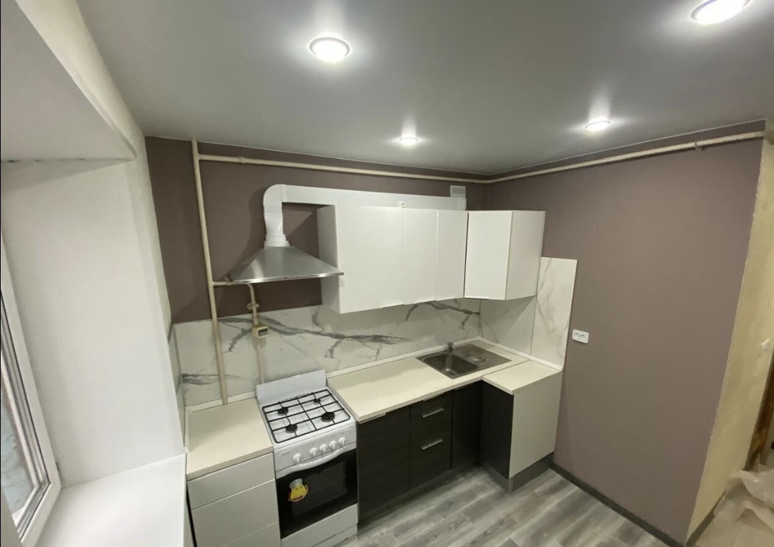 Окна ПВХ, везде натяжные потолки, санузел совмещен, облицован кафелем, Лоджия застеклена. В квартире остается кухонный гарнитур и стиральная машина.