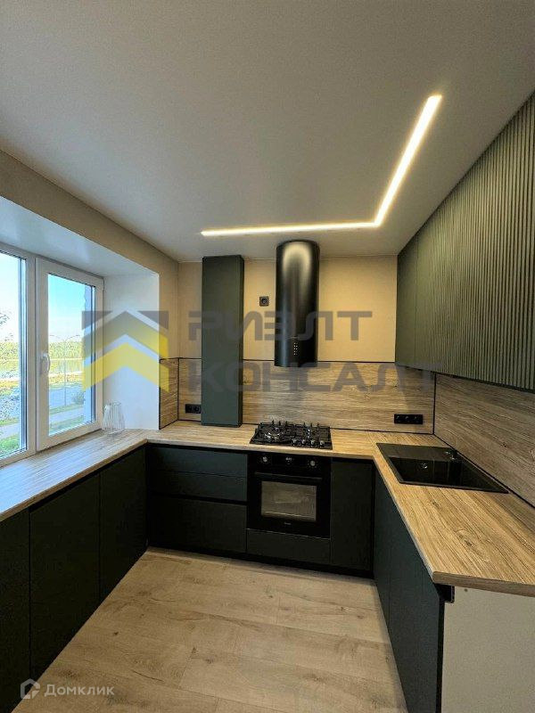 - установлена проектная кухня с встроенной бытовой техникой и посудомоечной машиной;