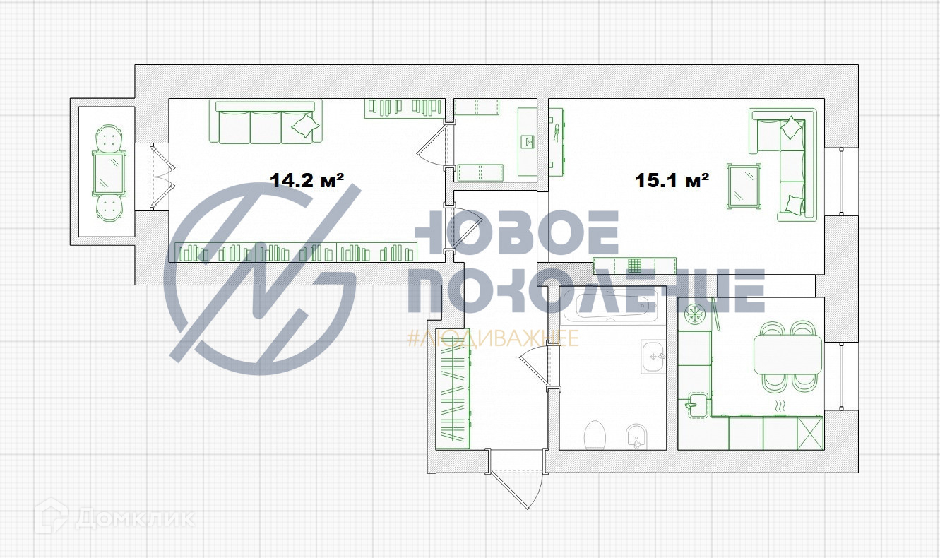 Общая площадь 52.2 м2