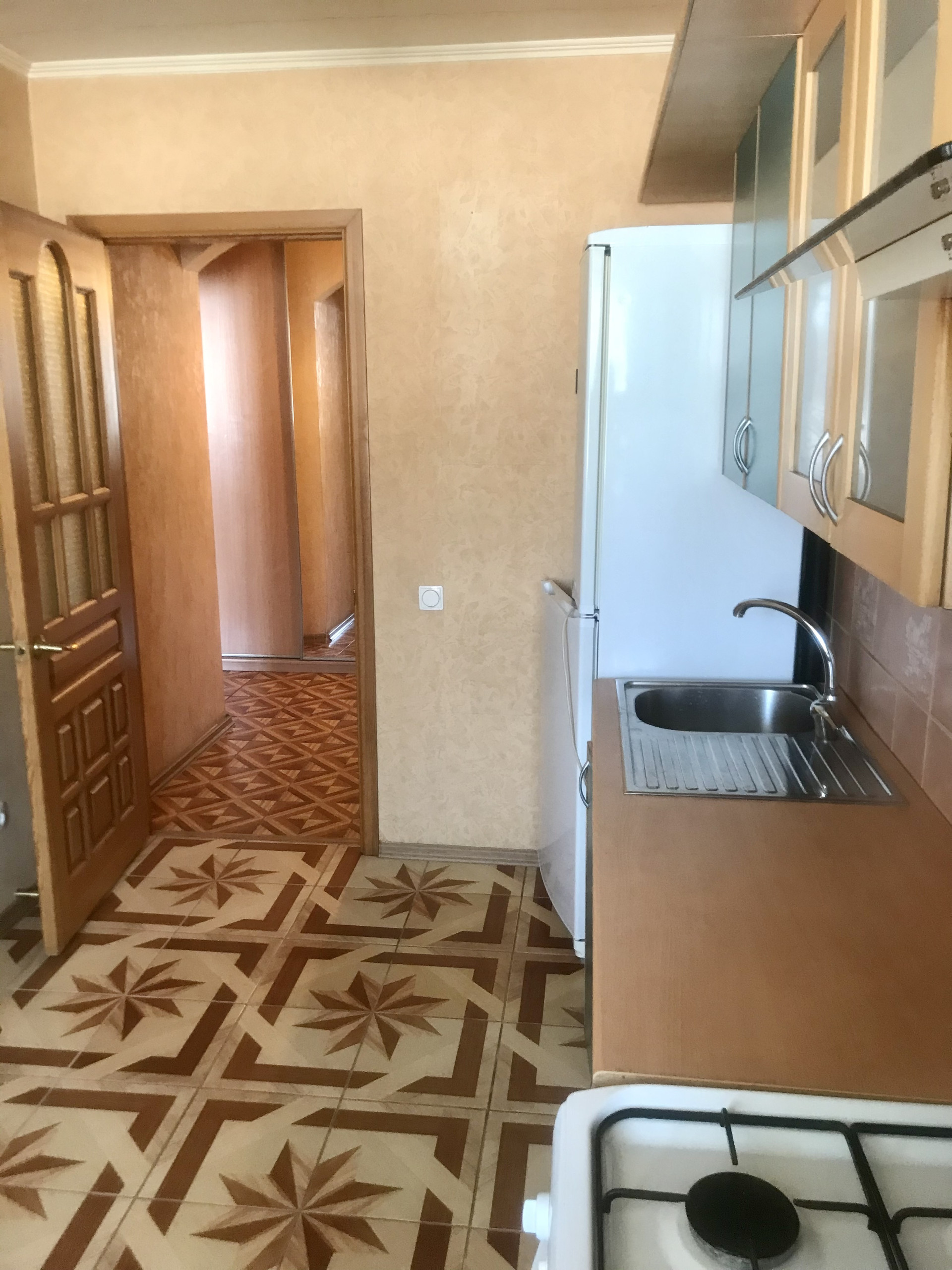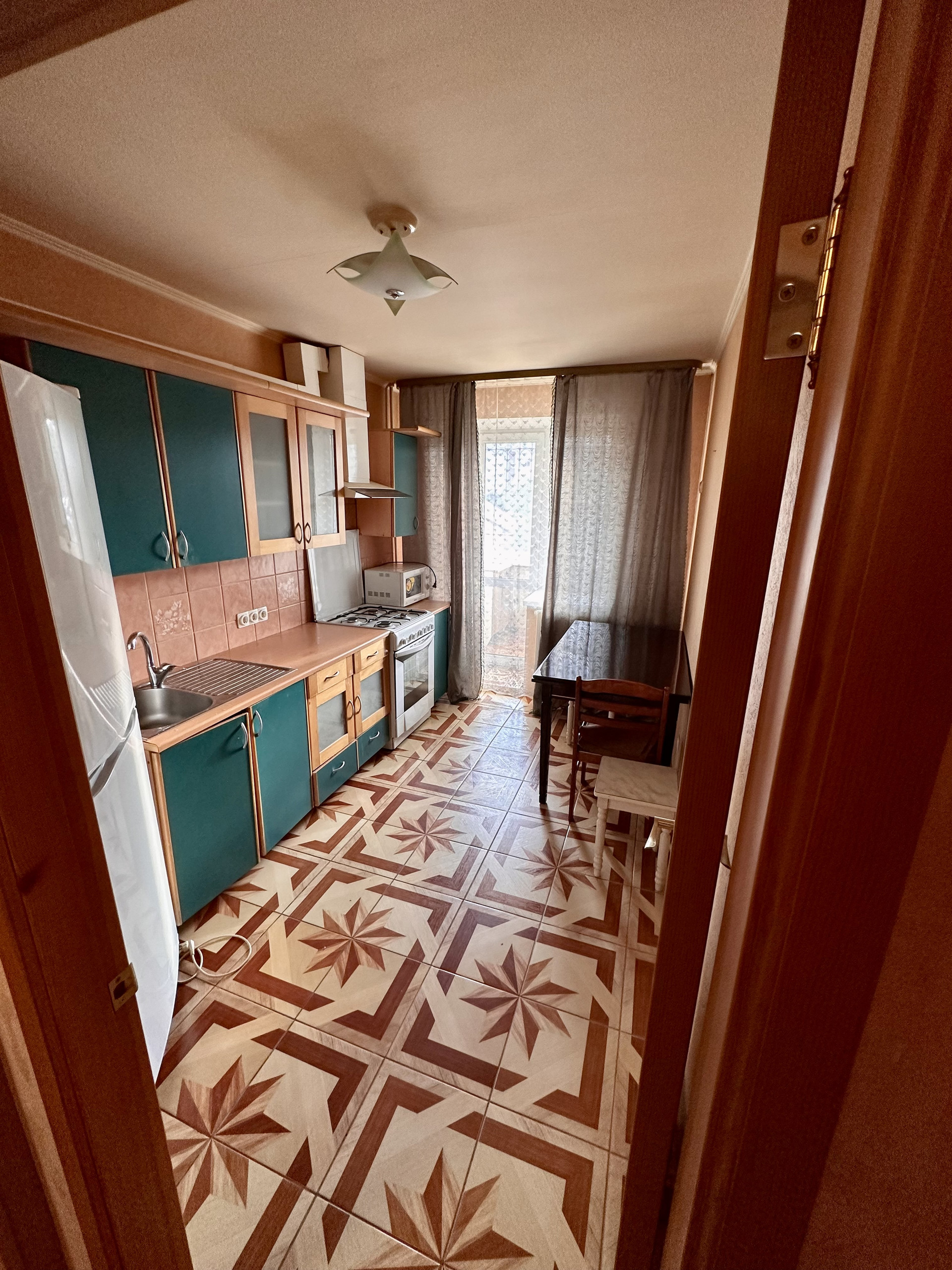 Квартира расположена на высоком первом этаже кирпичного дома. Цоколь-нежилые помещения(салон красоты). Чисто, посторонних запахов нет. Очень тёплая и солнечная квартира. ПВХ окна, решетки, москитный сетки. Просторная гостинная, большая кухня, комнаты изолированные, шкафы купе, кладовая/шкаф(между кухней и коридором). Межкомнатные двери из массива. Застекленная лоджия, с\у раздельный, ванная комната просторная. В квартире кухонный гарнитур, плита, водонагреватель, холодильник.