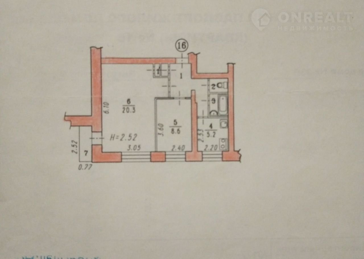 Площадь кухни 5.2 м2