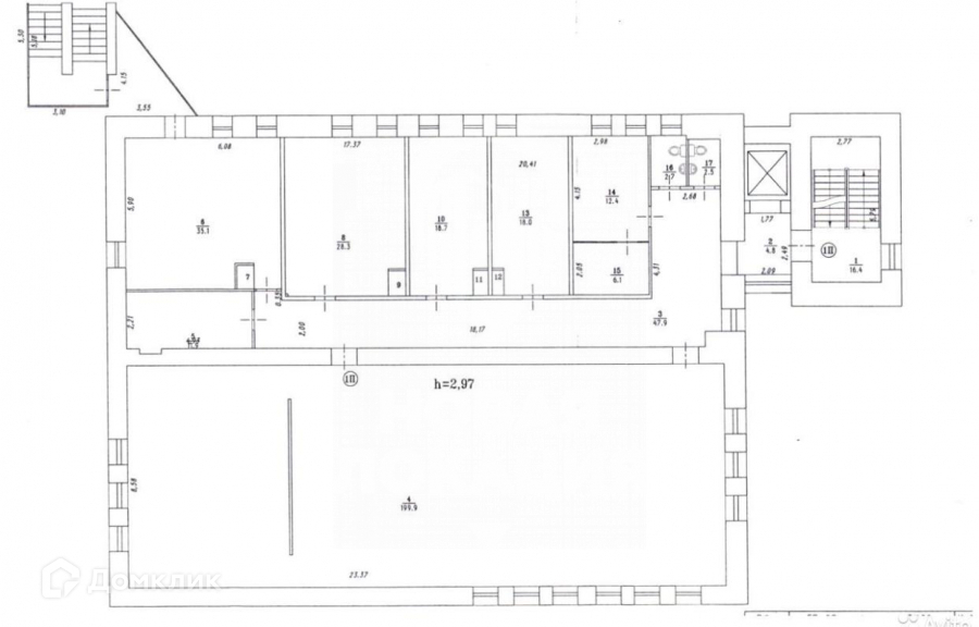 На первом этаже находится приемная(ресепшен), столовая, гардероб, комната охраны и другие вспомогательные помещения.На втором этаже располагается открытое пространство 200 м2 для рабочей группы. Выделено 2 переговорные комнаты.На третьем этаже половину занимает открытое пространство 200 м2, а в другой половине 6 кабинетов по 20-40 м2 (переговорные комнаты, руководители, бухгалтерия и др)Четвертый этаж мансардного типа (фото для примера прилагаются в объявлении) разбит на 2 небольших открытое пространство по 100 м2 и несколько переговорок и кабинетов. Общая площадь этажа 400 м2.