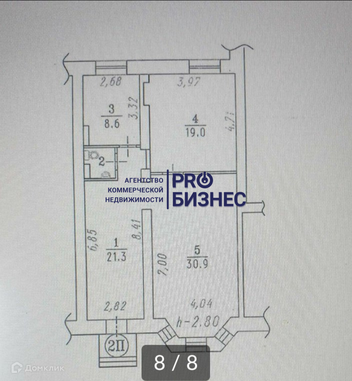 Высота потолков 2.8 м