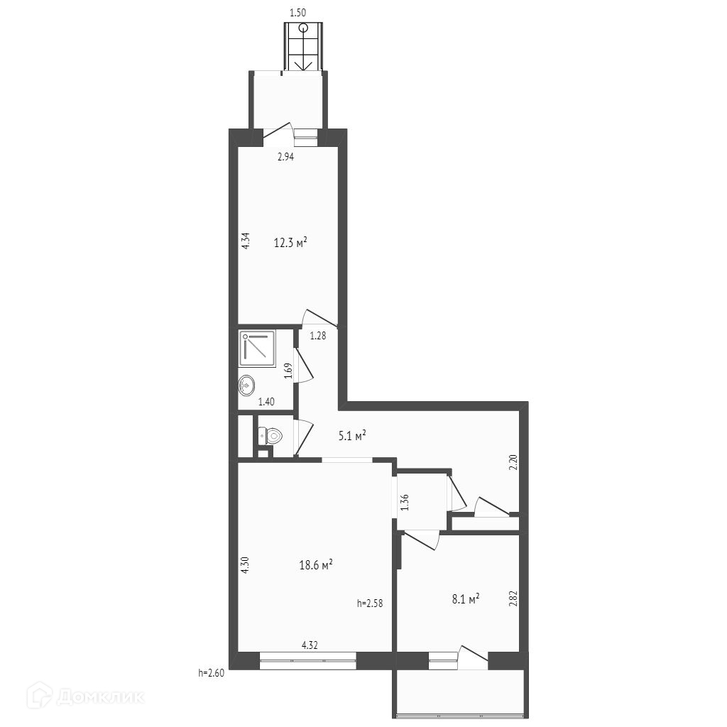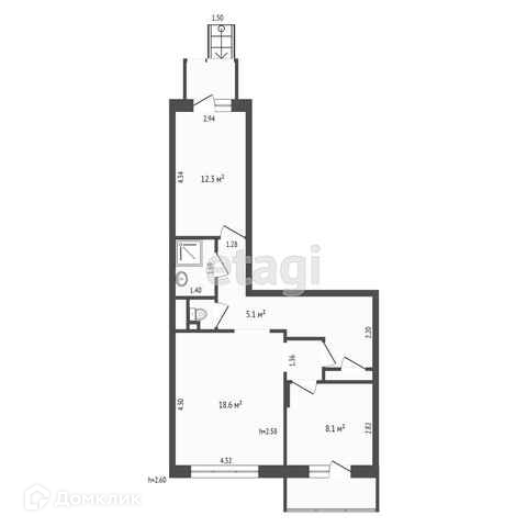 Общая площадь 64.3 м2