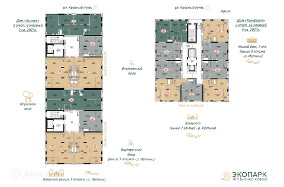 Район ЭКОПАРК ЖК - дом. Закрытая территория элитный район. В центре здания, 1-й этаж - с выходом на дворовую прогулочную территорию - напротив Дом Бизнес Класса Экопарк.