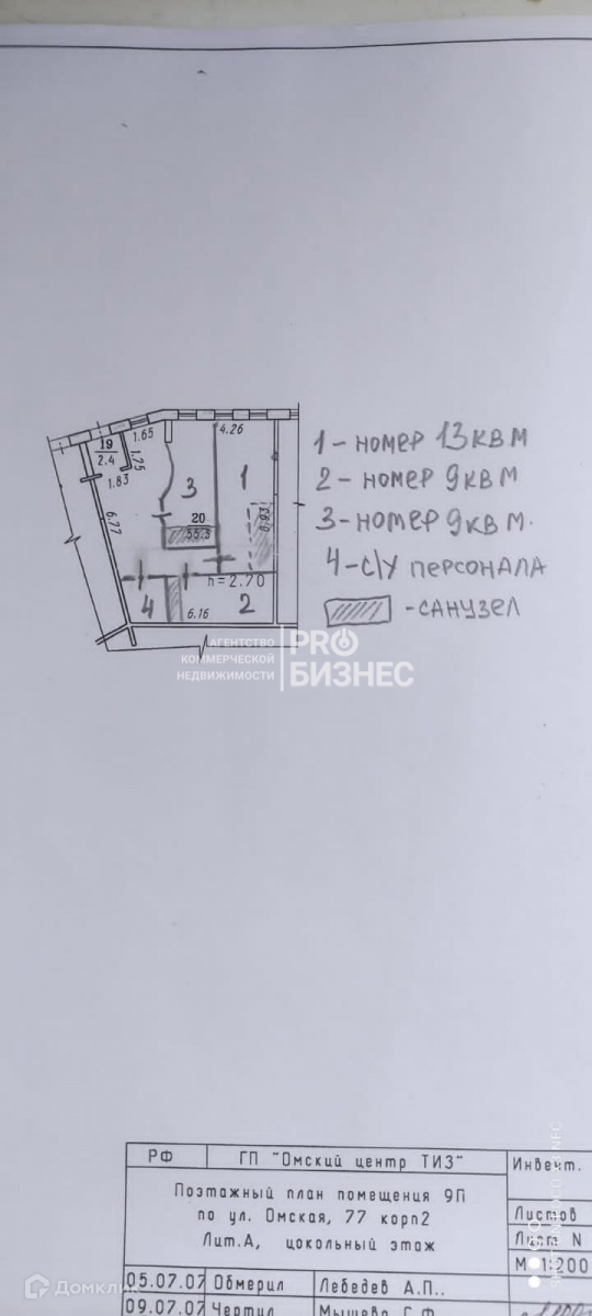 Компания ProБизнес предлагает к продаже помещение свободного назначения площадью 57 м², расположенное по адресу: ул. Омская, д. 77/2.