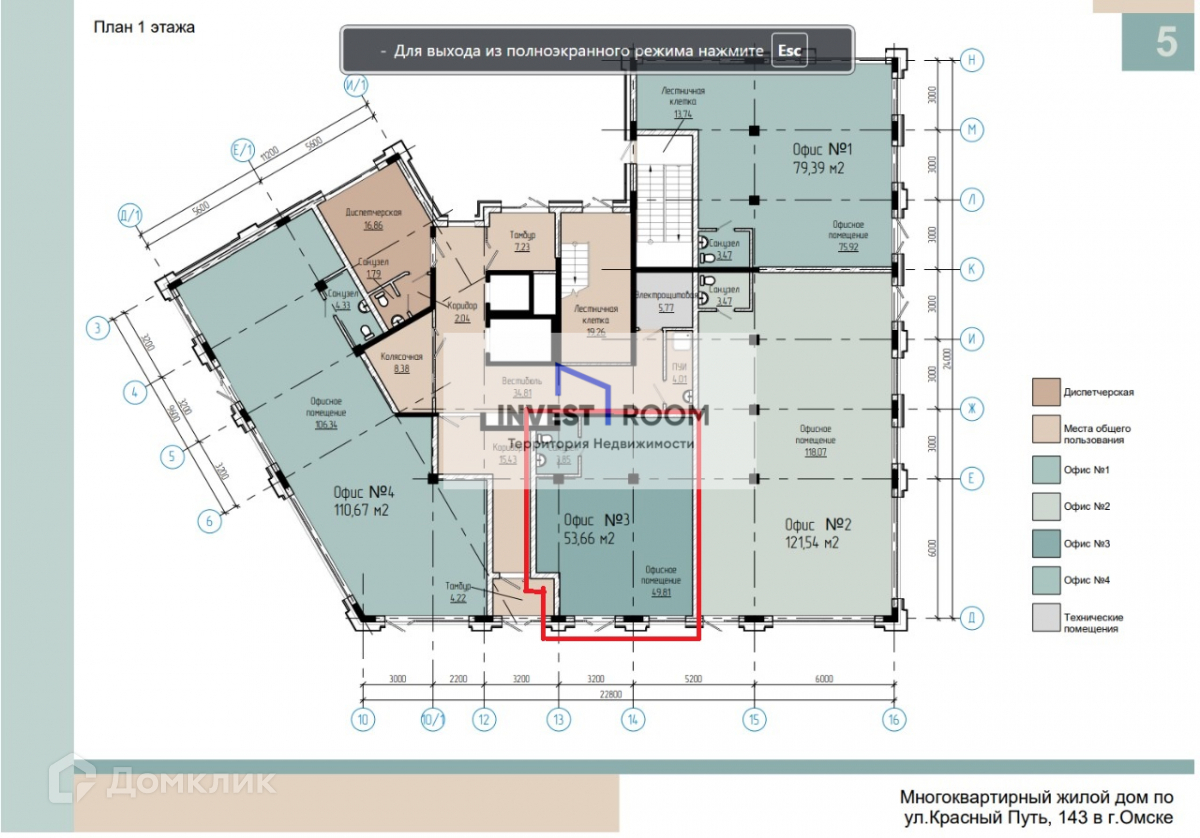 Офис, 52.7 м2, на продажу в Омске