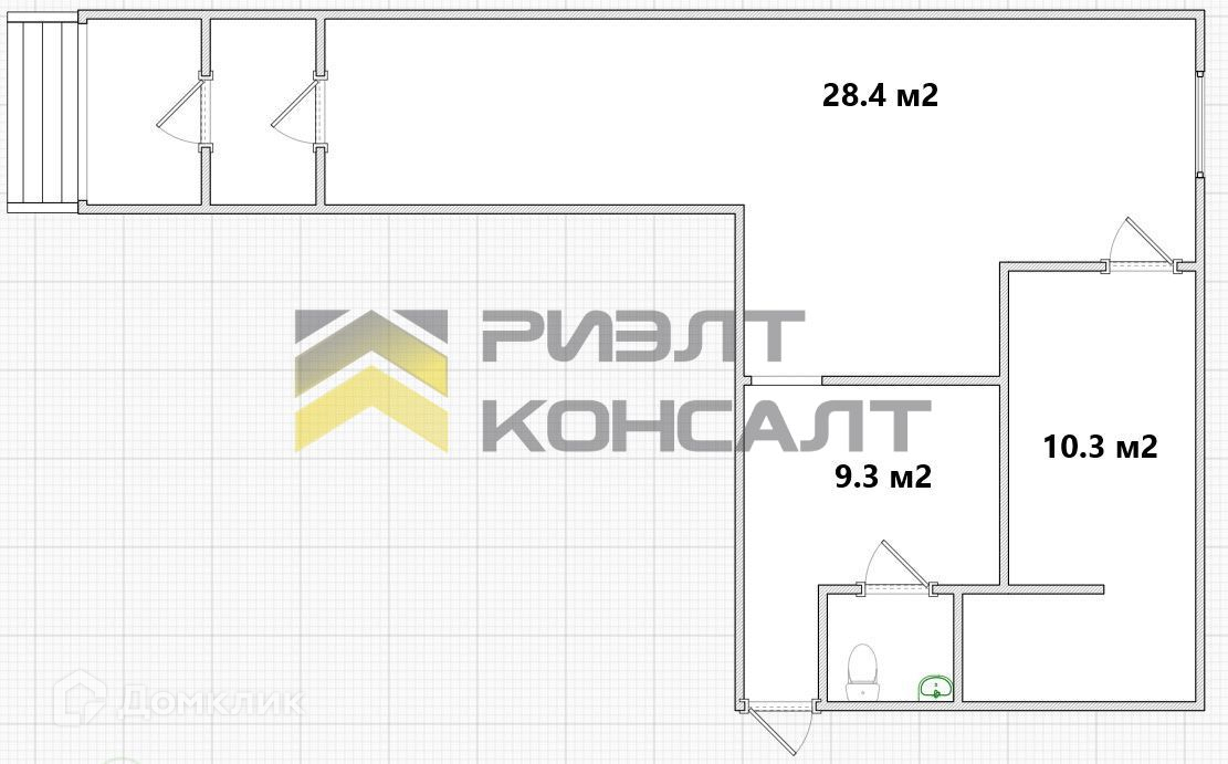 Общая площадь 52.4 м2