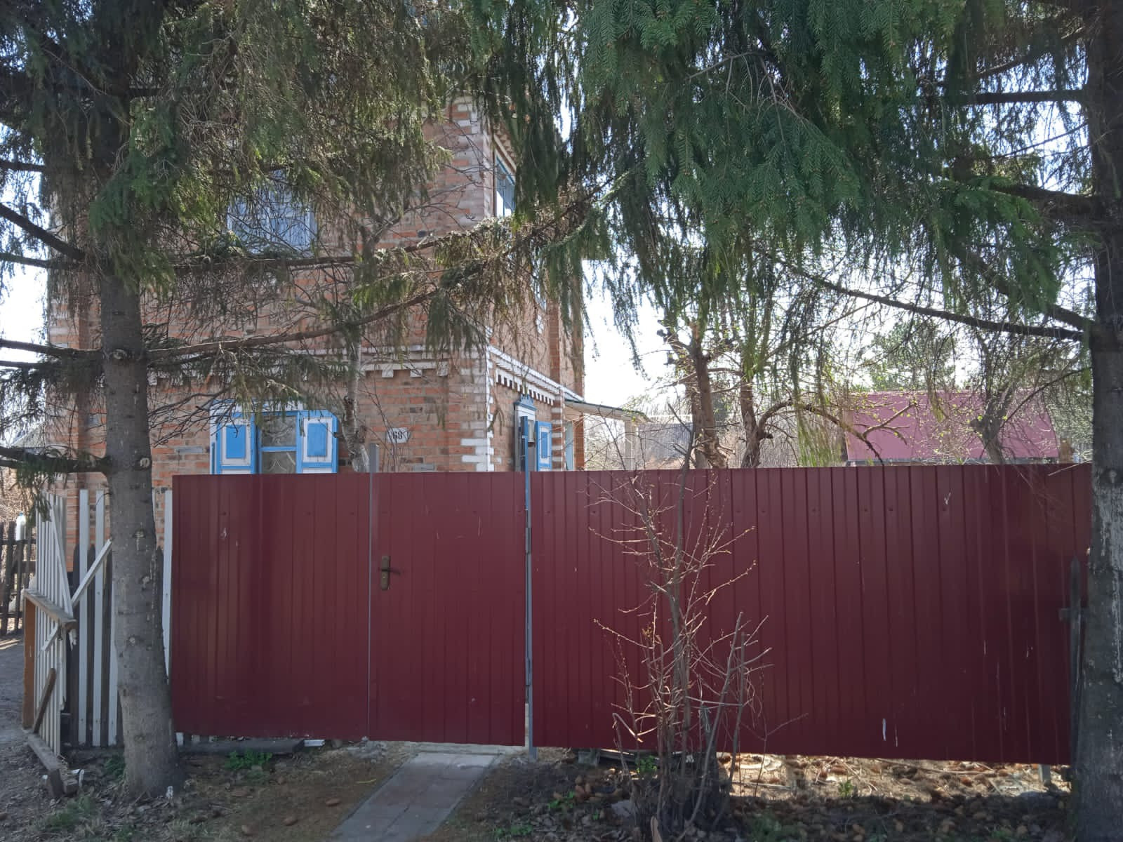 Дом 2-х этажный, кирпичный с решетками на окнах. Дверь железная.