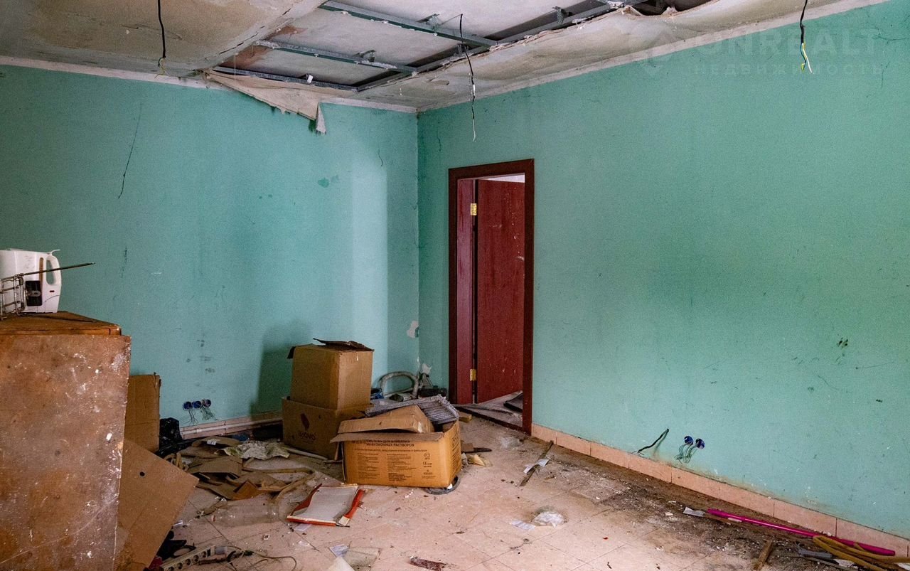 Земельный участок 4,8 сотки. с отдельным въездом, огороженный. Коммуникации надо проводить, свет, вода, отопление. На нём расположено отдельно стоящее нежилое двух этажное здание 148 кв.м., Надо делать кап ремонт, проводить элекртику и отопление.