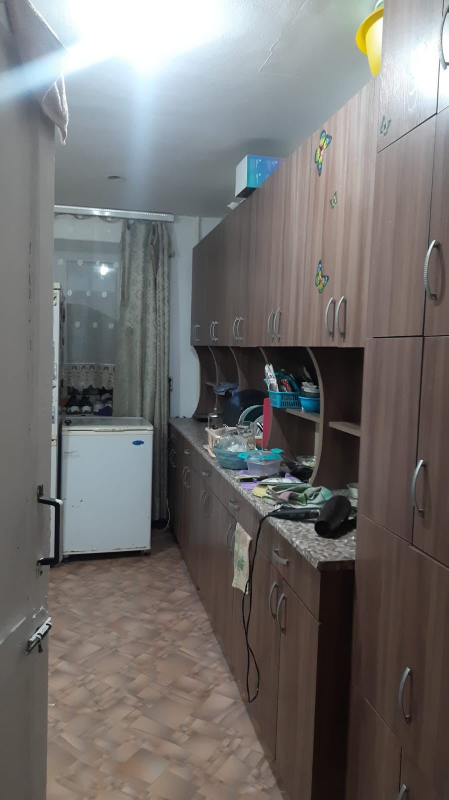 В секции всего 5 комнат, общая кухня и санузел. В комнате сделан свежий ремонт, чисто и уютно. Из мебели есть только раскладной диван. Хорошие спокойные соседи, в секции чисто.