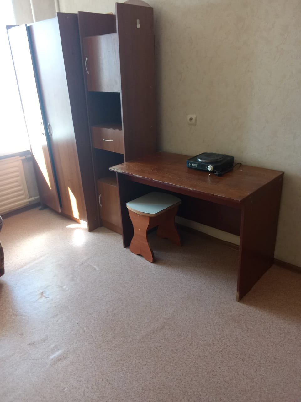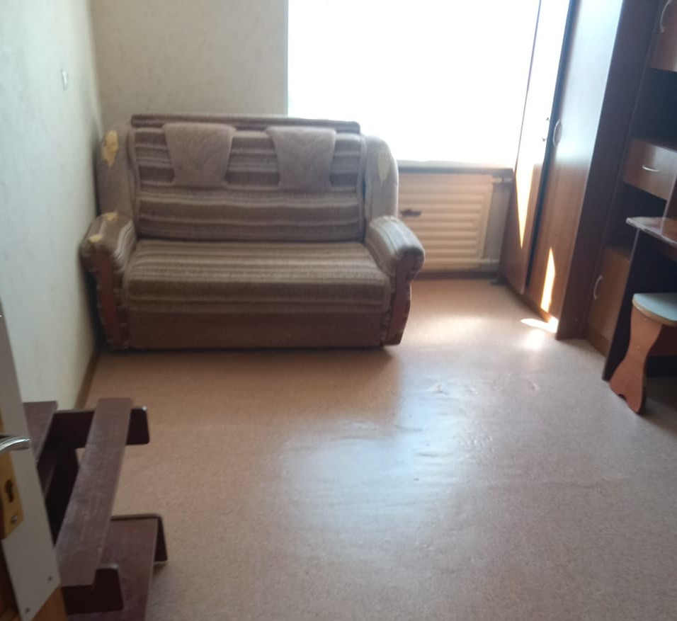 Комната в общежитии (без залога) в секции на 2 (две) комнаты. Душ, раковина, туалет на 2 (две) комнаты. Есть общая кухня на 4 комнаты. Оплата 9.000 (Всё включено). Единоразовая комиссия 5.000 . Вся необходимая мебель : диван , шкаф, стол, кухонный гарнитур и бытовая техника :  холодильник, , эл плита, эл чайник. В подъезде сделан новый качественный ремонт. Лифт новый, работает исправно. Удобная транспортная развязка, развитая инфраструктура.