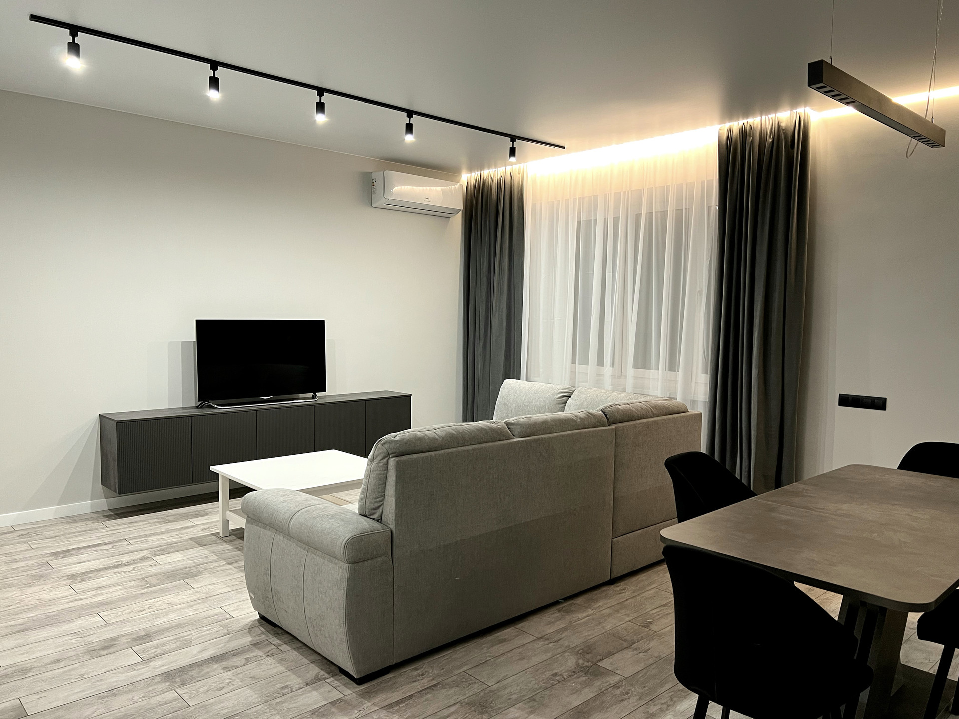 Квартира с дизайнерским ремонтом. Ремонт закончен в декабре 2022. В квартире имеется все для комфортного проживания: один большой зал совмещённый с кухней, 2 гардеробные комнаты, прачечная комната, 2 просторные спальни( одна из них мастер спальня) , 2 лоджии, 2 ванных комнаты.