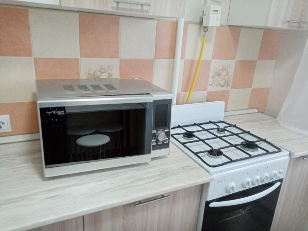 Есть пылесос, холодильник, утюг, телевизор, гладильная доска, микроволновая печь, то есть все для комфортного проживания.