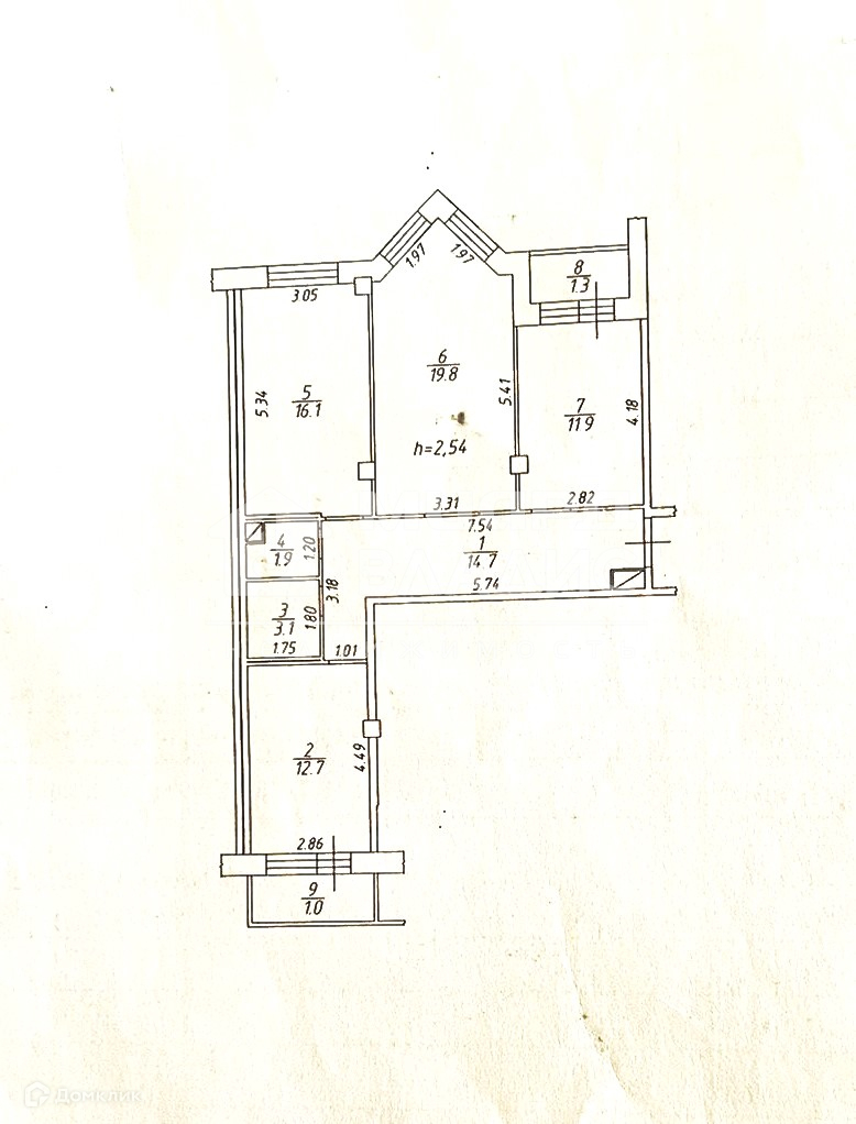 Высота потолков 2.54 м