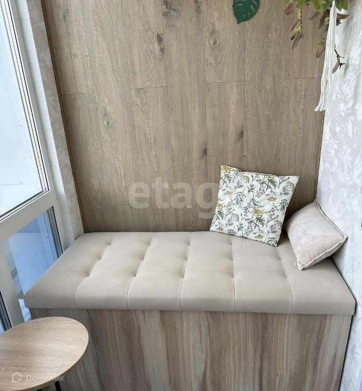 Балкон: утепленный и жилой, в зимний период отапливается инфракрасным полом с регулировкой, панорамное остекление, новый 5камерный стеклопакет, диван-ларь, рабочий стол, стул.