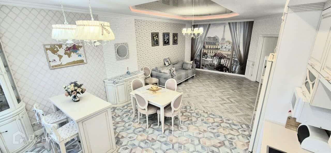 В квартире выполнен стильный современный дизайнерский ремонт, который гармонично сочетает красоту, уют и функциональность. Высокие потолки (3 м) наполняют пространство светом и создают атмосферу свободы.