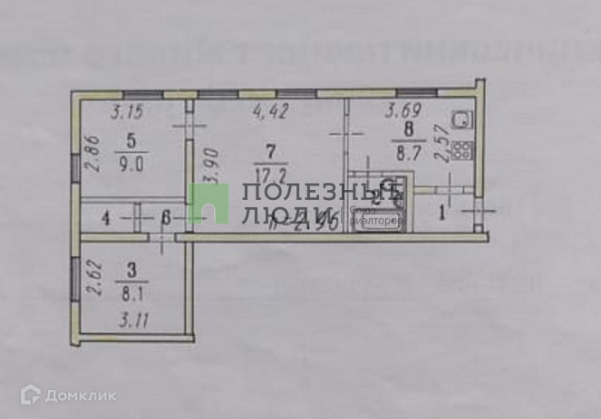 Жилая площадь 34.3 м2
