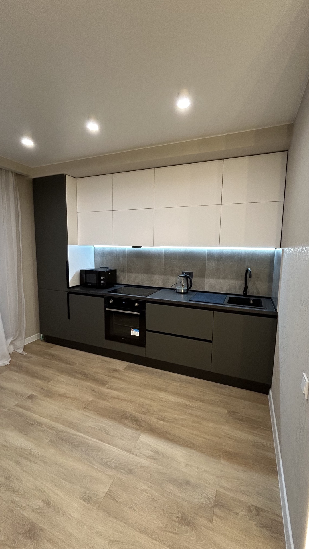 Квартира оборудована всем необходимым для вашего комфортного проживания: кухонный гарнитур с встроенной бытовой техникой (холодильник, духовой шкаф, варочная поверхность, вытяжка), эл.чайник, микроволновка, стиральная машина, кондиционер, диван, 2 вместительных шкафа-купе, телевизор, кровать с ортопедическим матрасом, сушилка, гладильная доска, утюг, а также необходимая посуда.