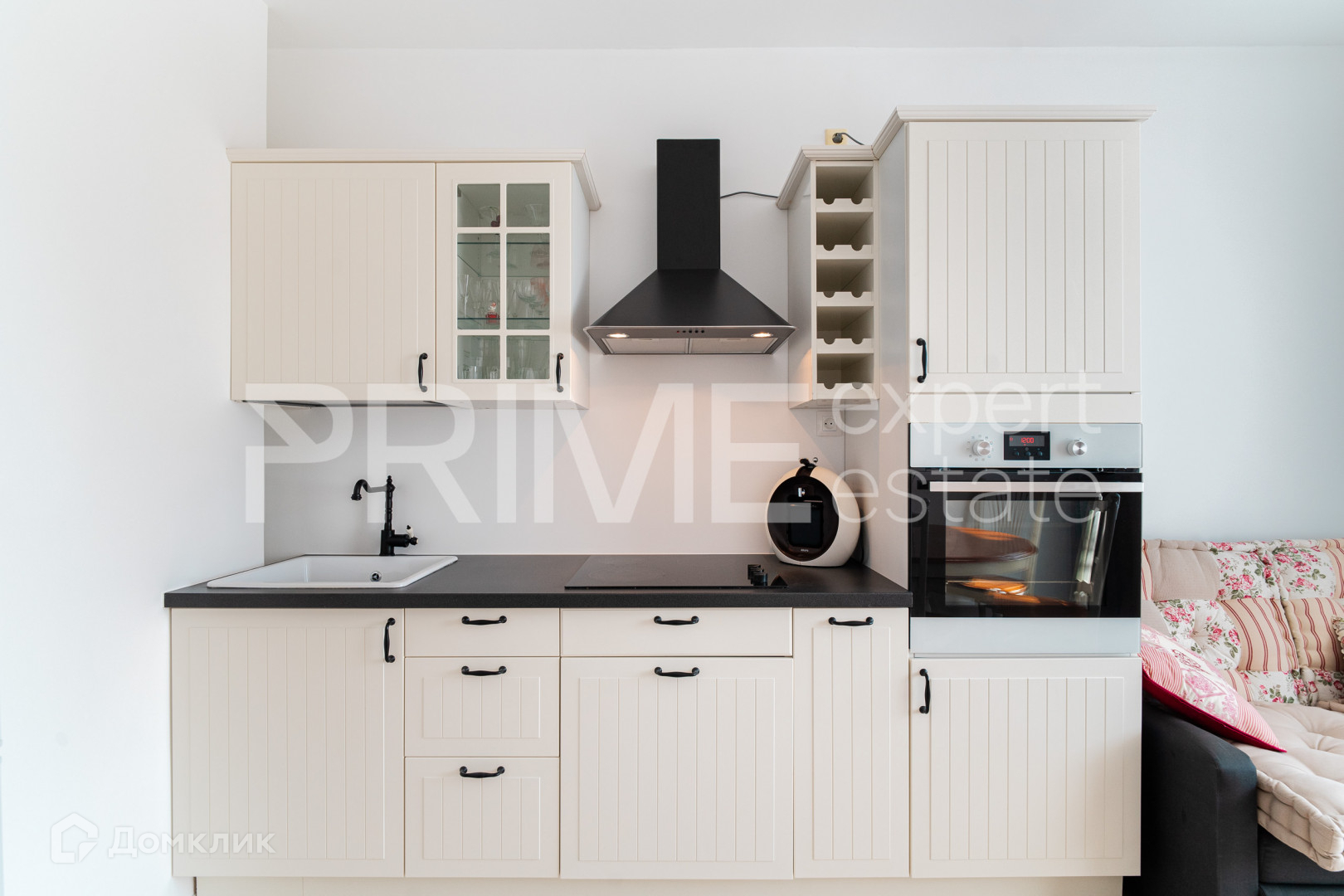 вместительная кухня - гостиная, включает в себя концептуальный кухонный гарнитур с электроплитой, духовым шкафом и микроволновой печью, круглый обеденный стол и мягкий диванчик для отдыха и неспешных бесед;