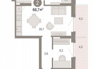 Общая площадь: 66.7 м2
