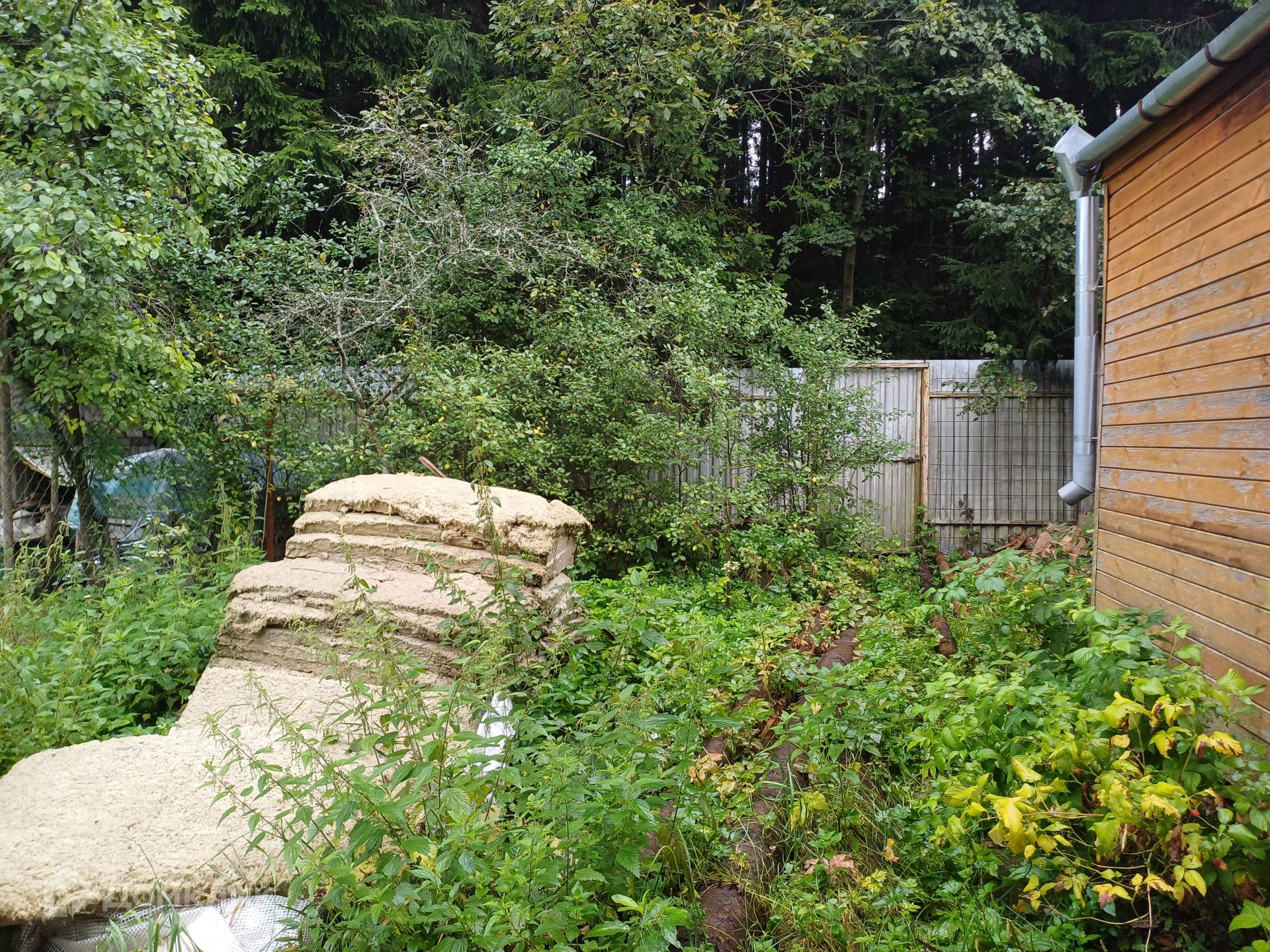 Одна сторона участка граничит с сосновым лесом. Есть даже калитка, открываешь её и ты сразу оказываешься в лесу. Там растут грибы: белые, подберезовики, подосиновики, лисички, опята, а по краю леса растет земляника!