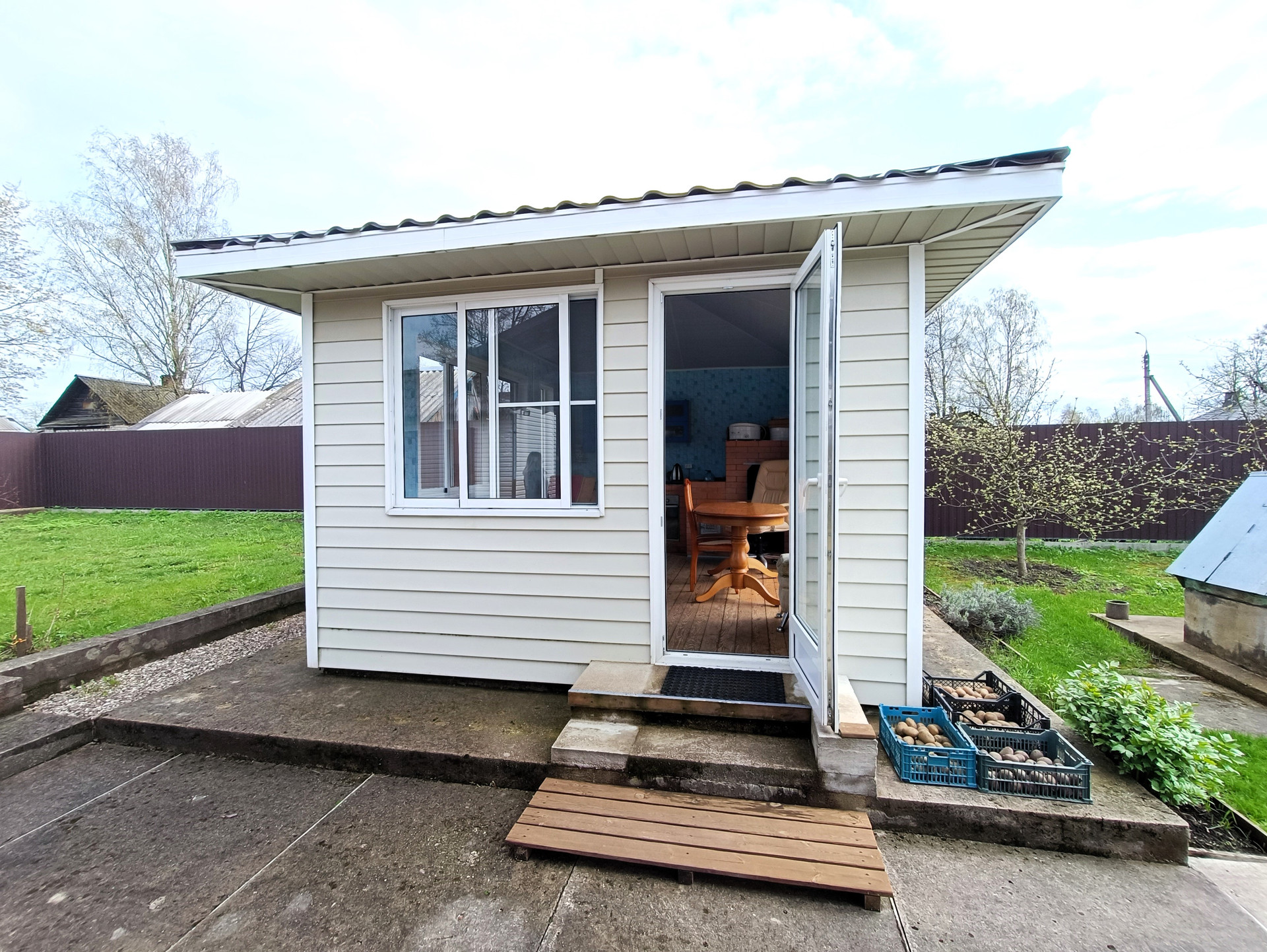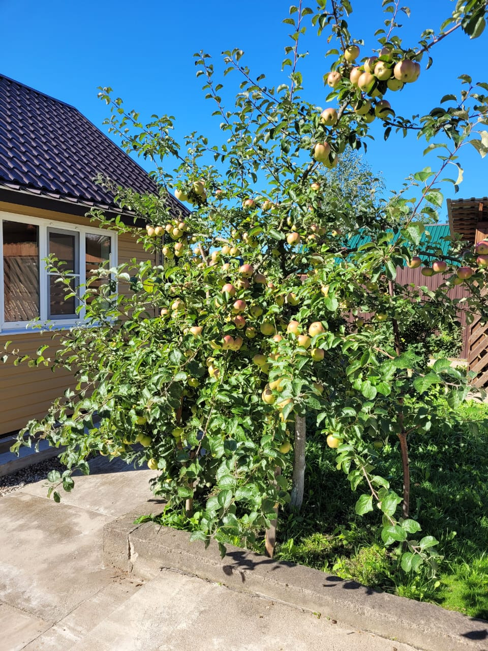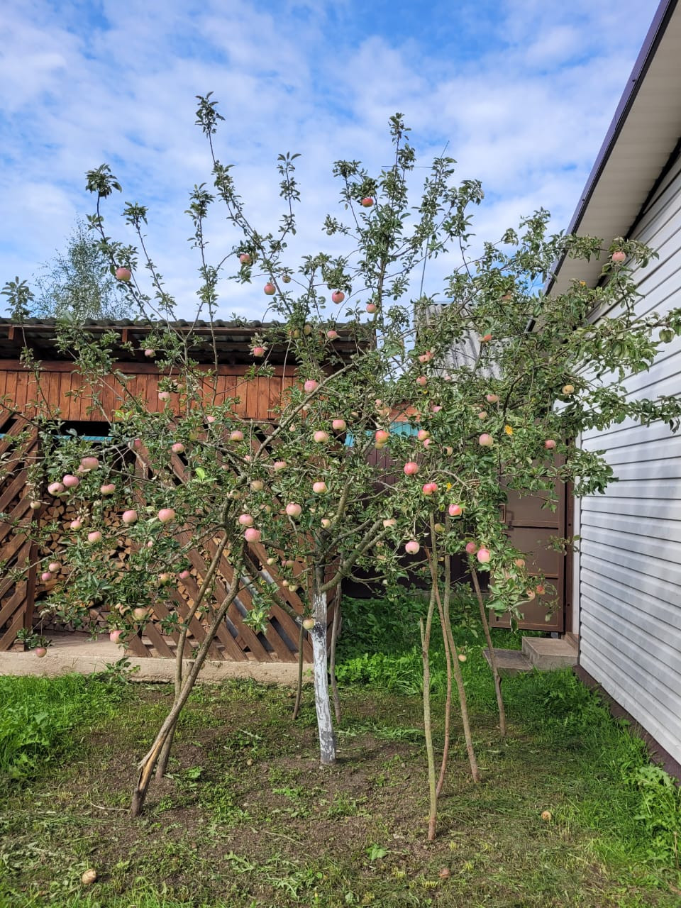 Посажен молодой, но уже плодоносящий сад из деревьев и кустарников (яблони, груши, кусты смородины, малина, клубника и т.д.)