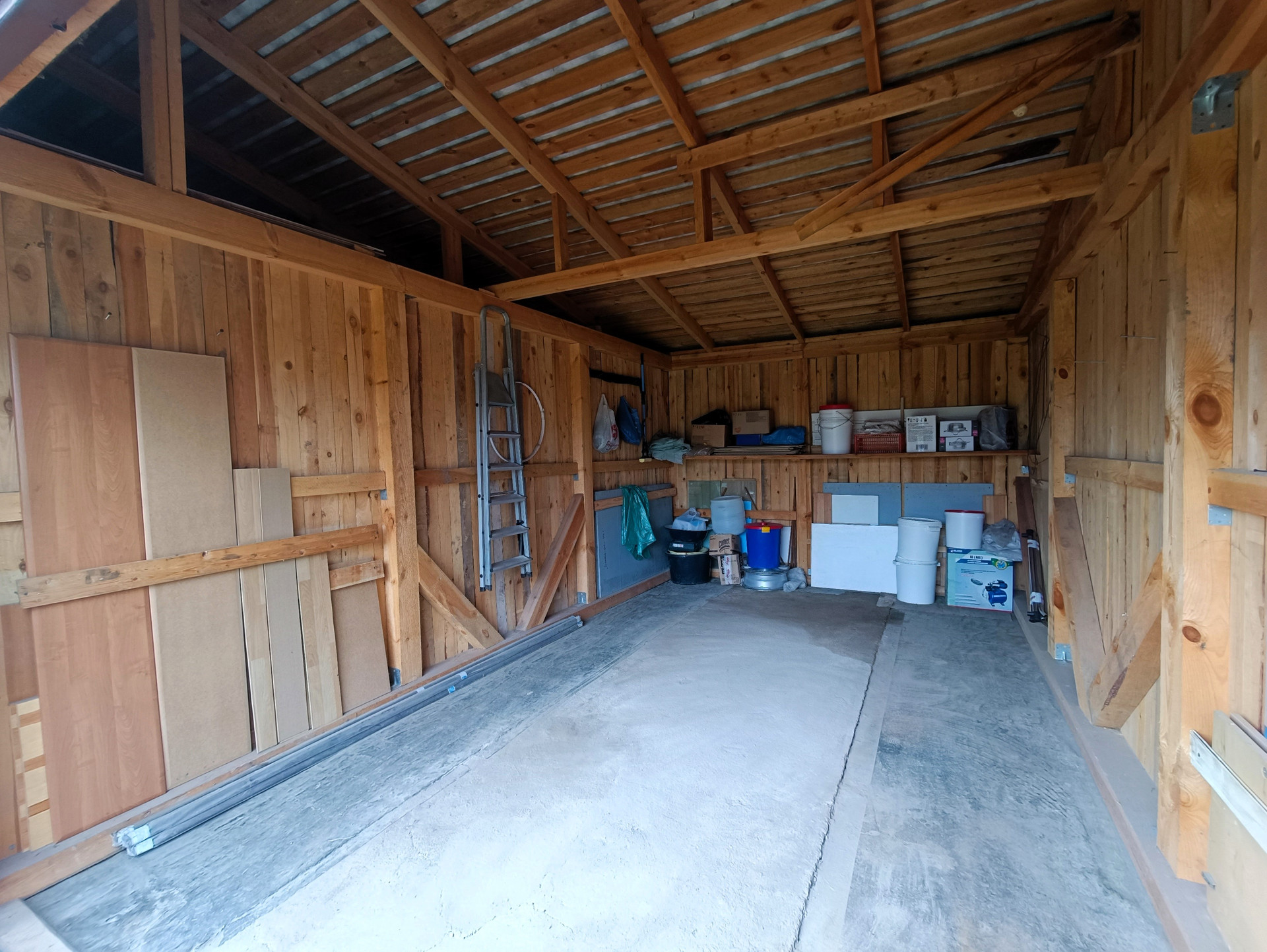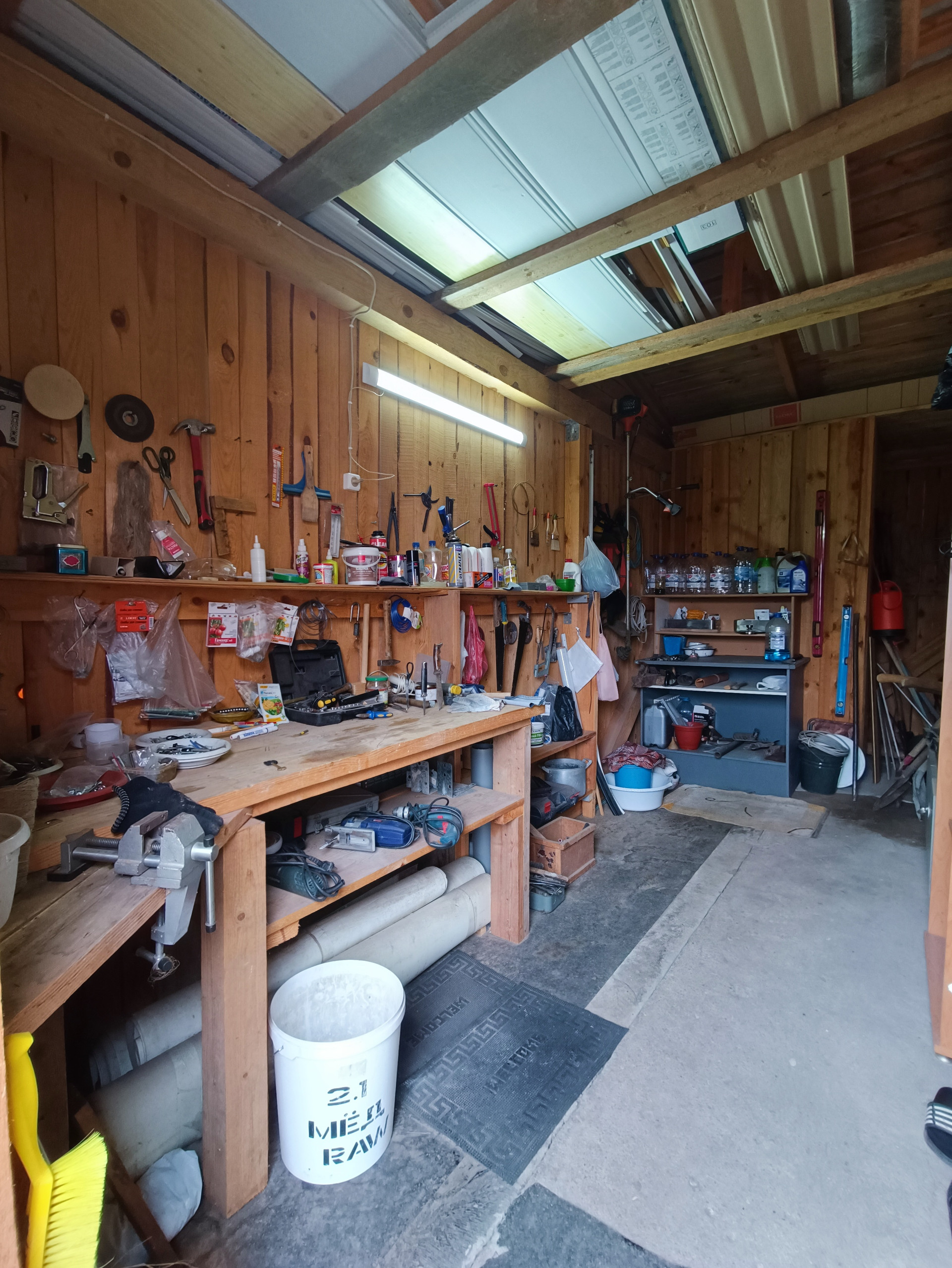 Просторный гараж с функциональной мастерской и навесом под автомобиль.