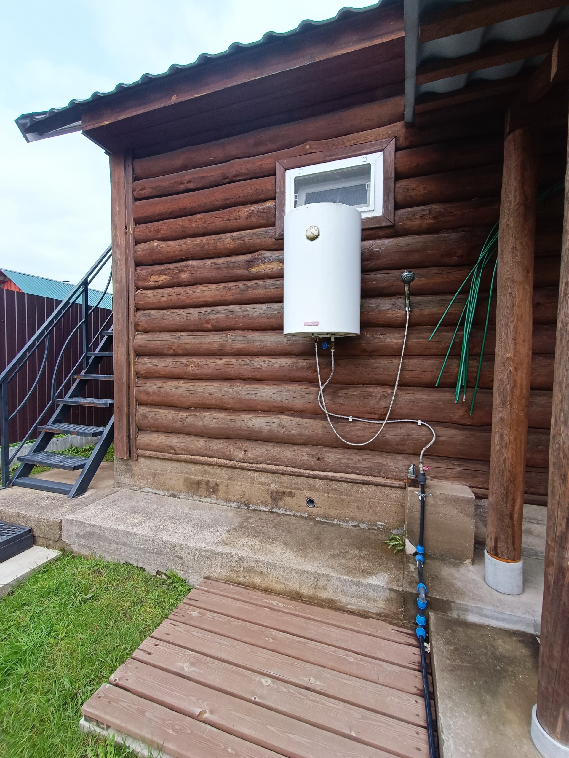 Летний душ, туалет, 2 теплицы из поликарбоната, питьевой колодец , скважина, дровяник и площадка с навесом.