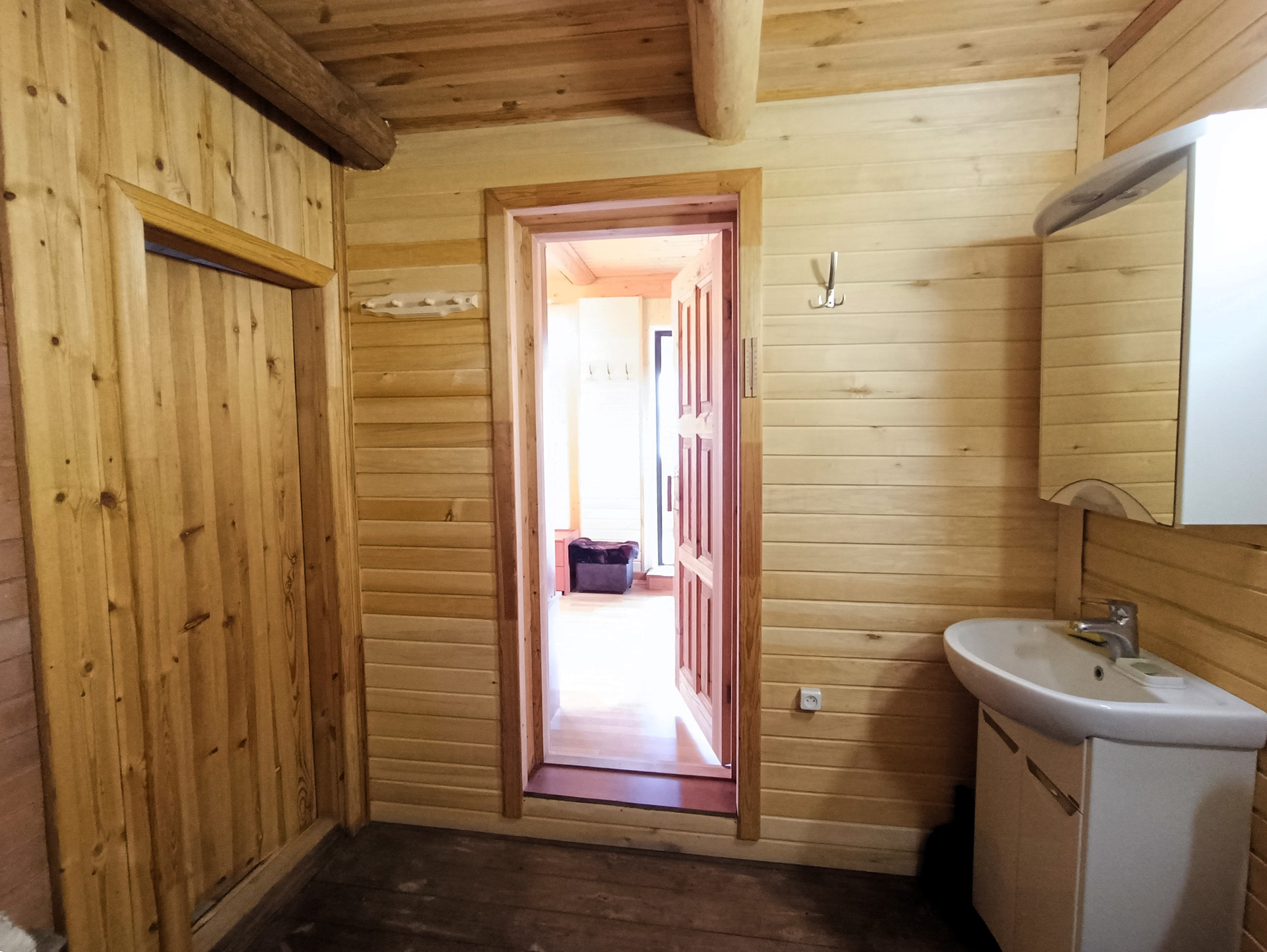 1-й этаж: прихожая 5 м.кв., жилая комната 18 м.кв, комната отдыха(предбанник) 7,5 м.кв, парная 10,5 м.кв.