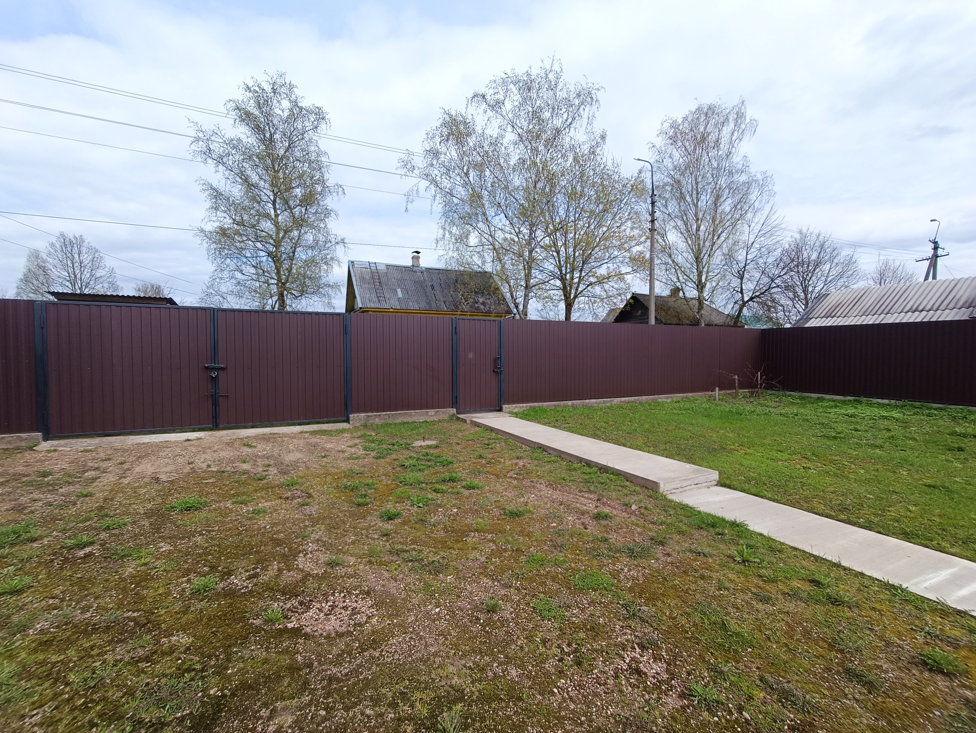 Участок солнечный, ровный и сухой, площадь участка 13 соток (КН 60:12:0010260:17), по всему периметру огорожен 2-х метровым забором из металлопрофиля на ленточном фундаменте.