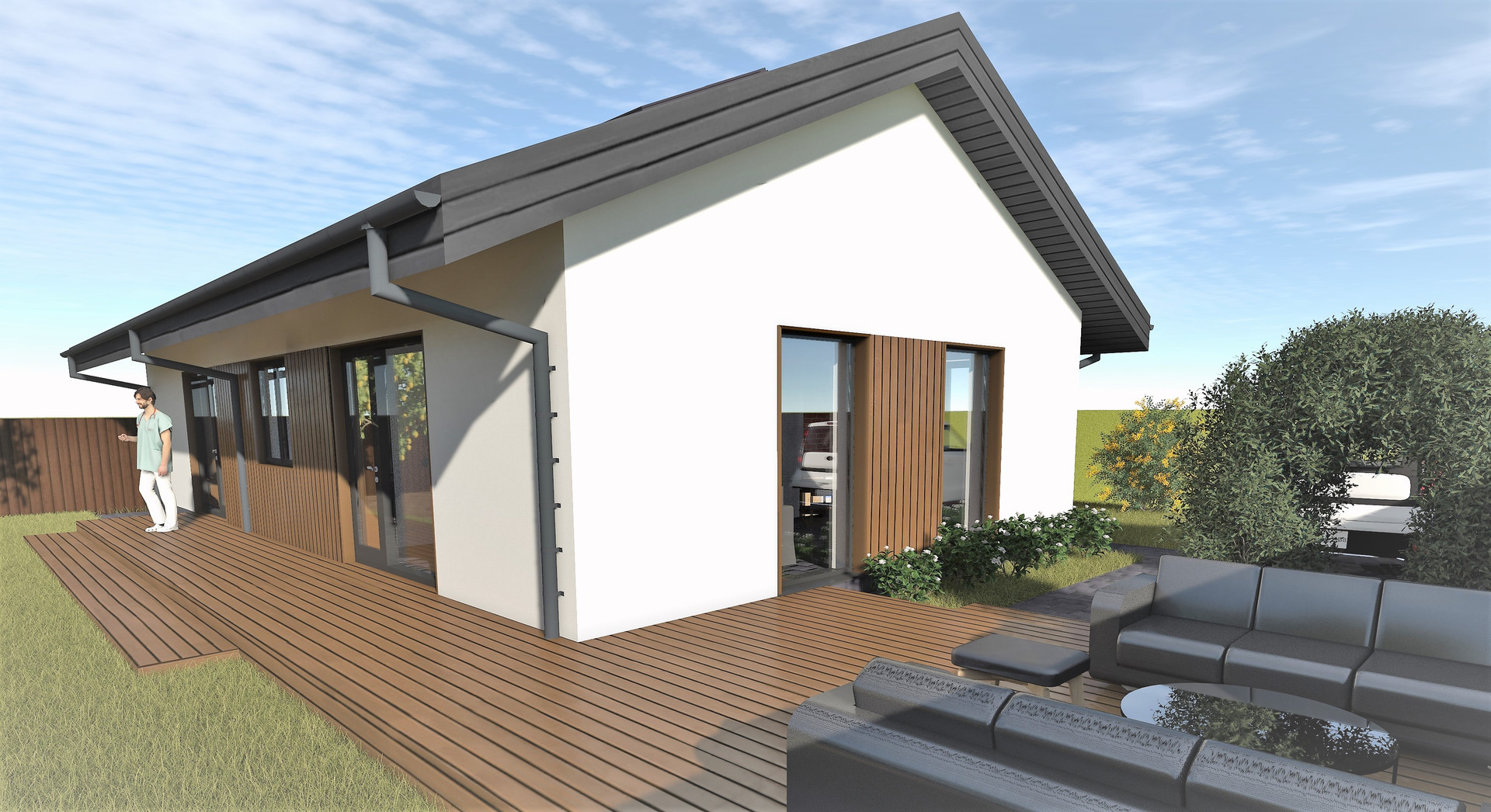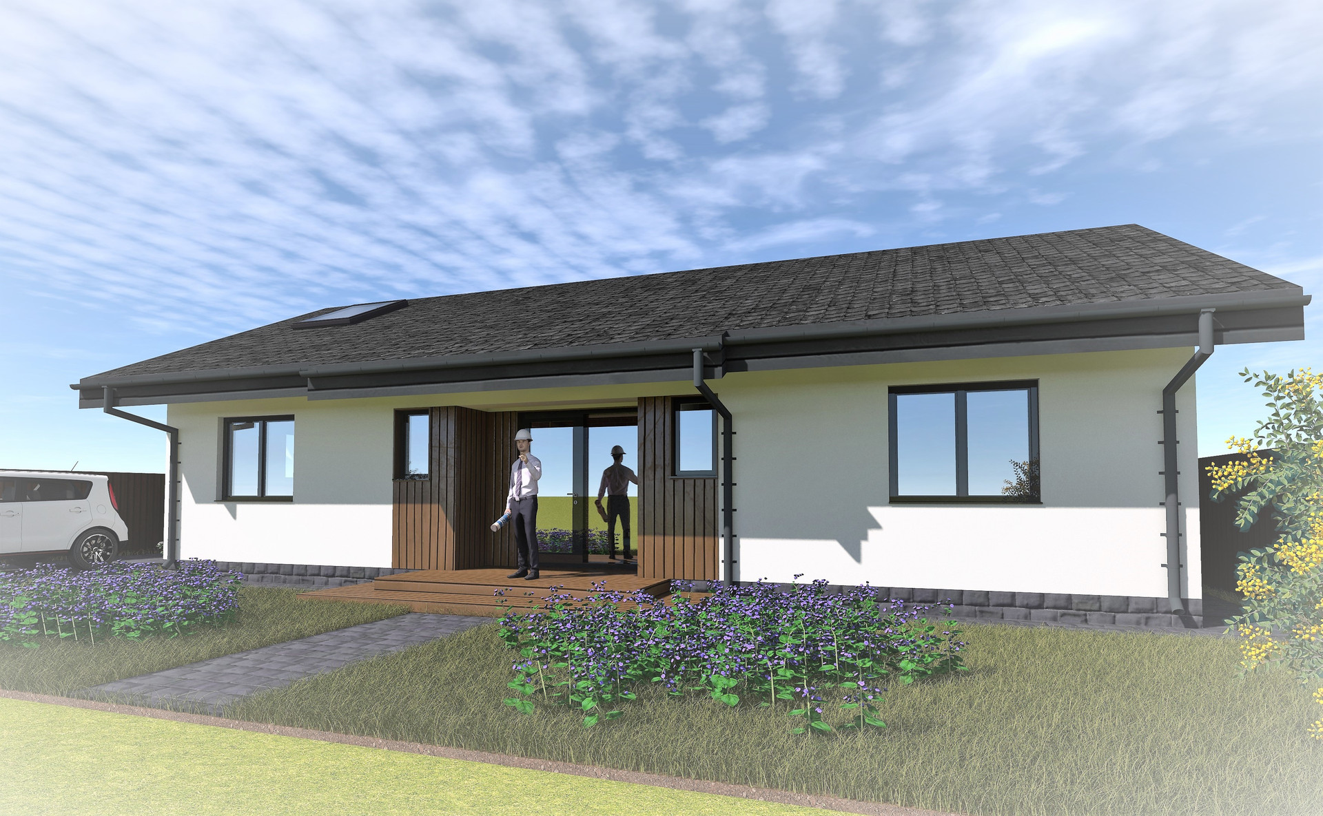 устройством пароизоляции. Оконные блоки металлопластиковые 70мм с 2-х камерными стеклопакетами. По периметру здания устраивается утеплённая отмостка, шириной 1000 мм.