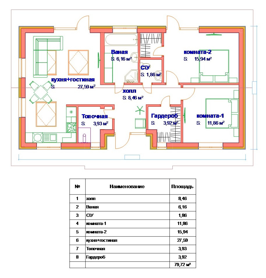 Общая площадь 80 м2