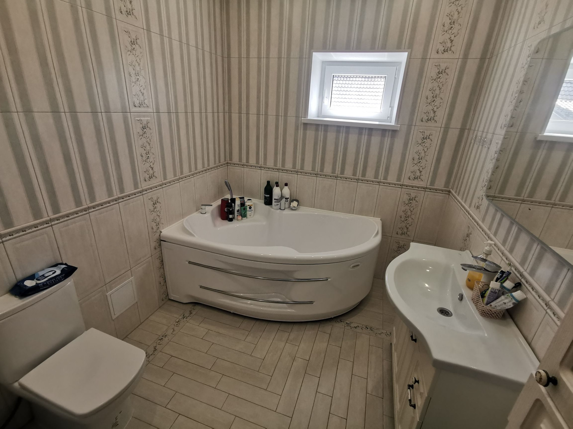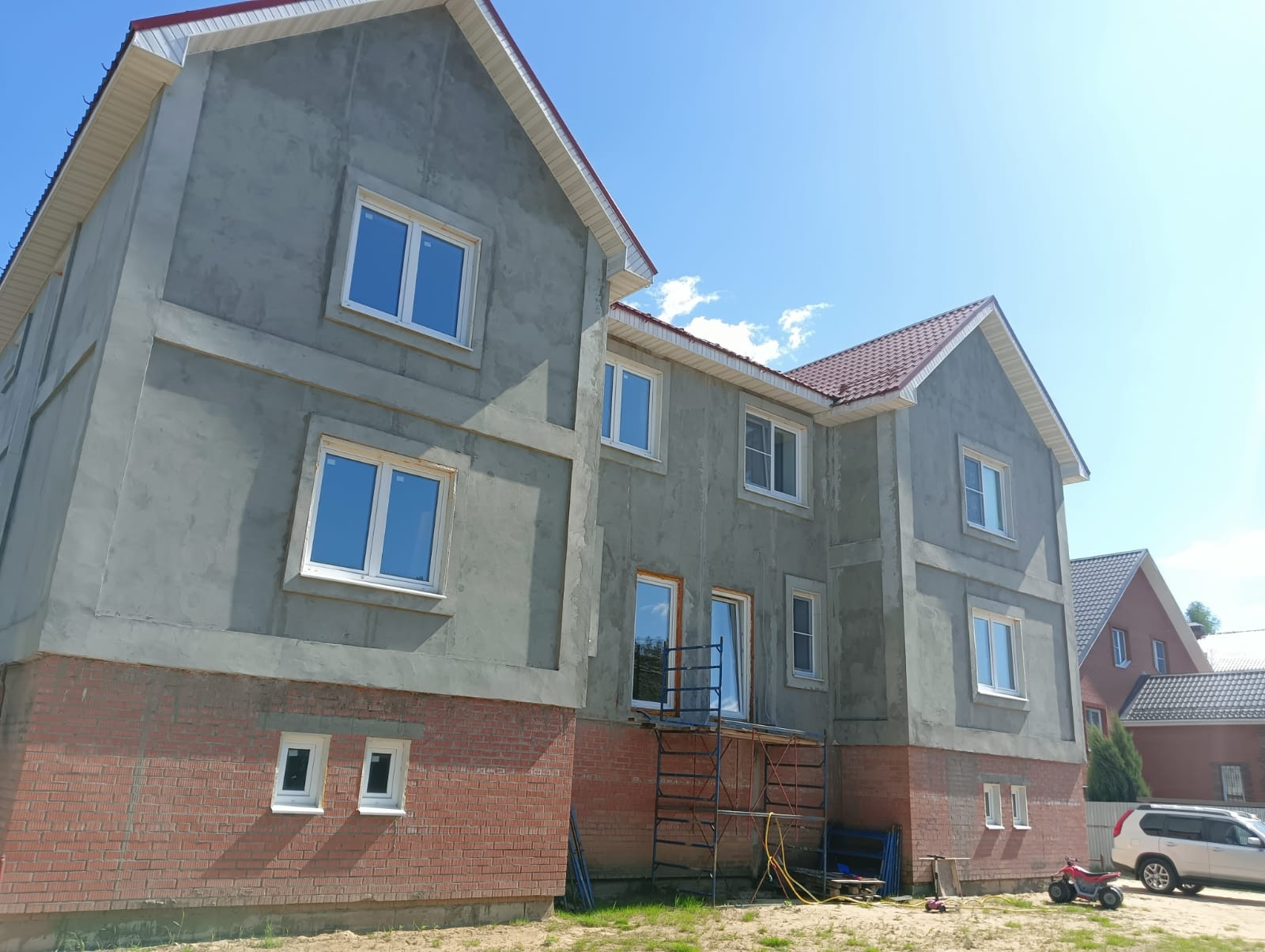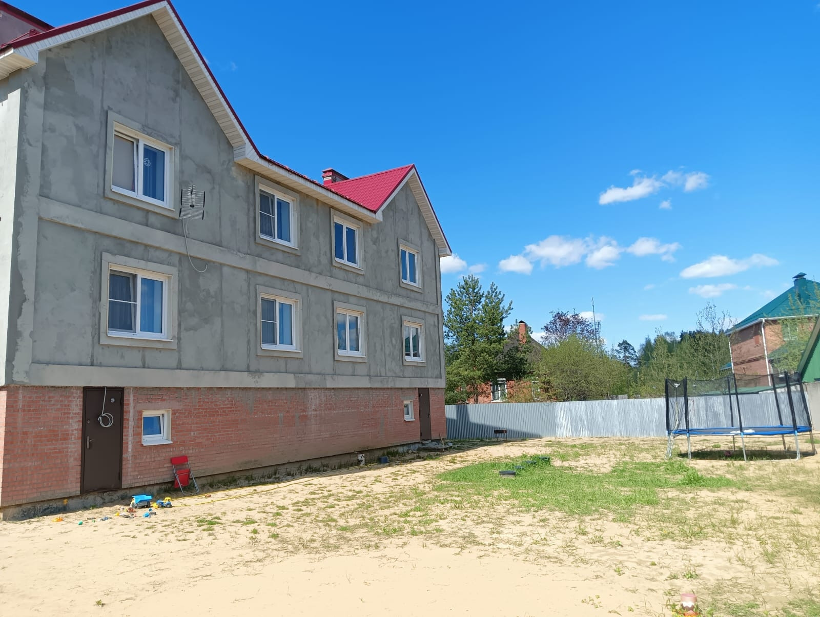 В доме три этажа, одна часть полностью с хорошим ремонтом.