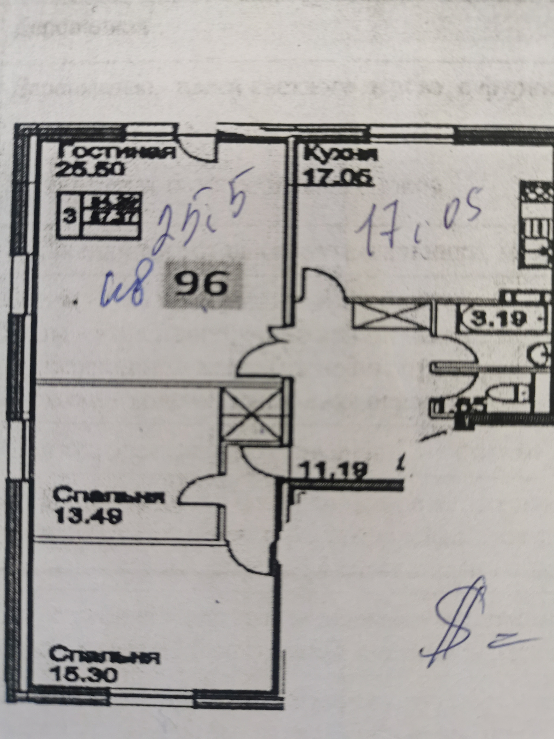 Жилая площадь 54.3 м2