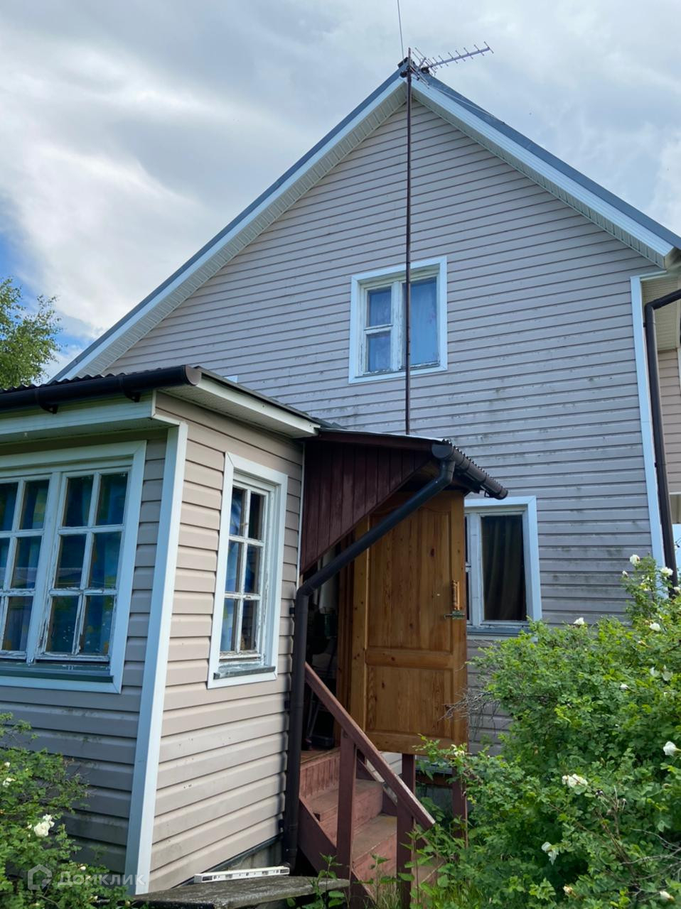 Арт. 42937197 Двухэтажный дачный дом (щитовой, обшит сайдингом) с двумя террасами и маленький домик (спальня +кухня с газовой плитой + душ) на садовом участке 6 соток