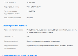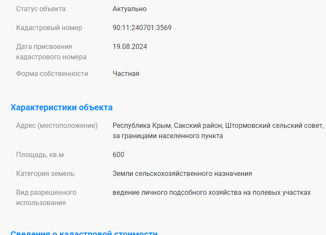 БЕЗ КОМИССИИ ДЛЯ ПОКУПАТЕЛЯ! Продается участок ЛПХ площадью 4,1 сот, расположенный возле села Штормовое, в 1 километре от моря. Участок правильной прямоугольной формы. Категория земель: Земли сельскохозяйственного назначения. Вид разрешенного использования: Ведение личного подсобного хозяйства на полевых участках (ЛПХ). Участок оформлен в частную собственность... |