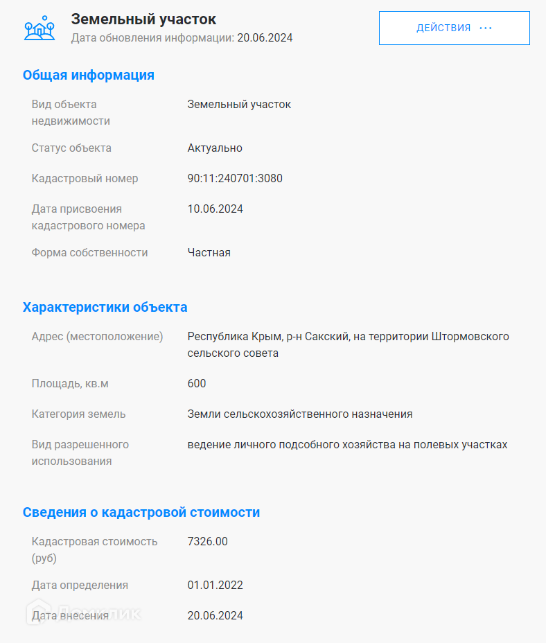 Продается земельный участок ЛПХ 6 соток в с. Штормовое. Документы РФ , быстрый выход на сделку.