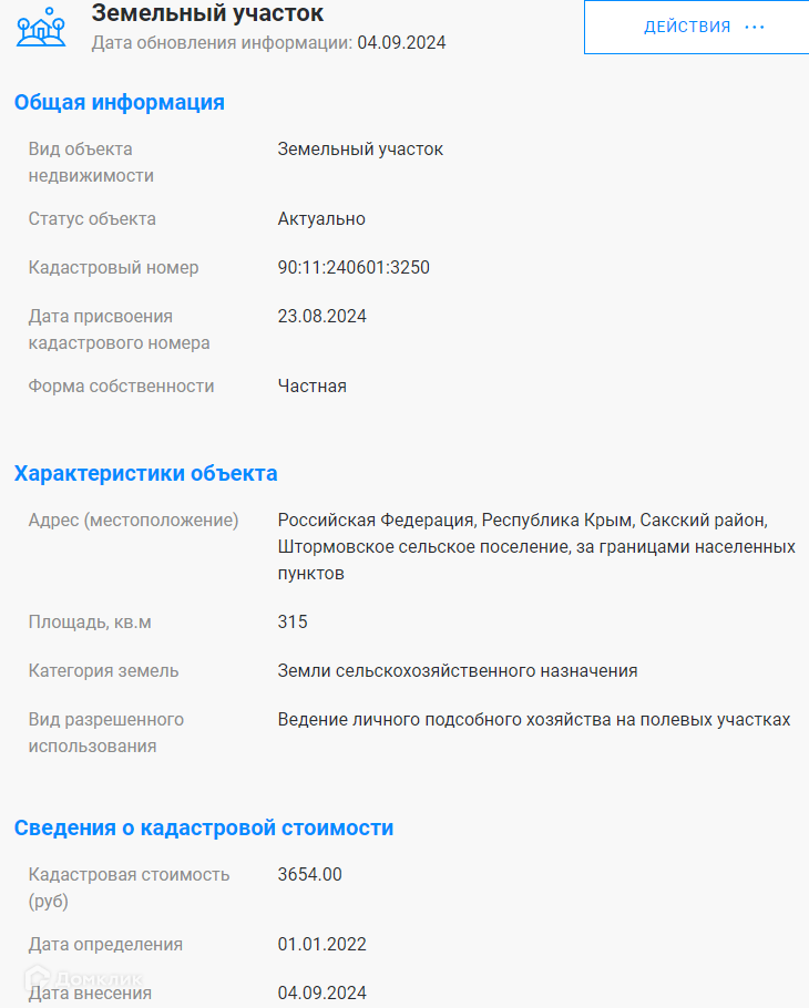 Стоимость недвижимости: