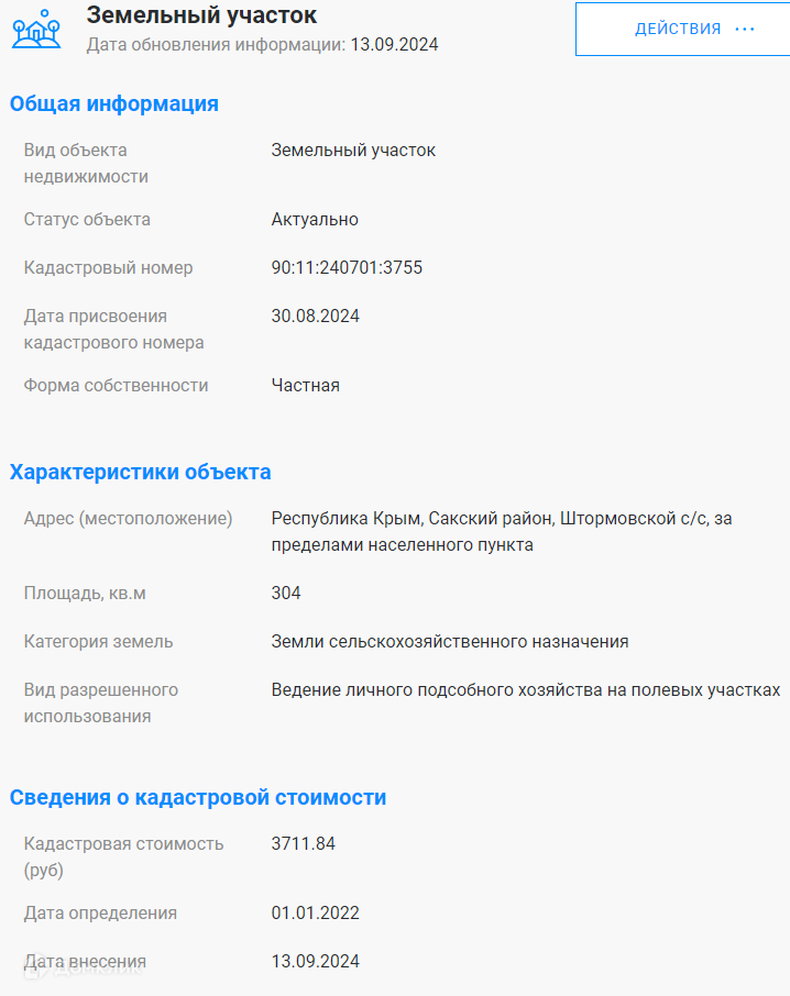Стоимость недвижимости: