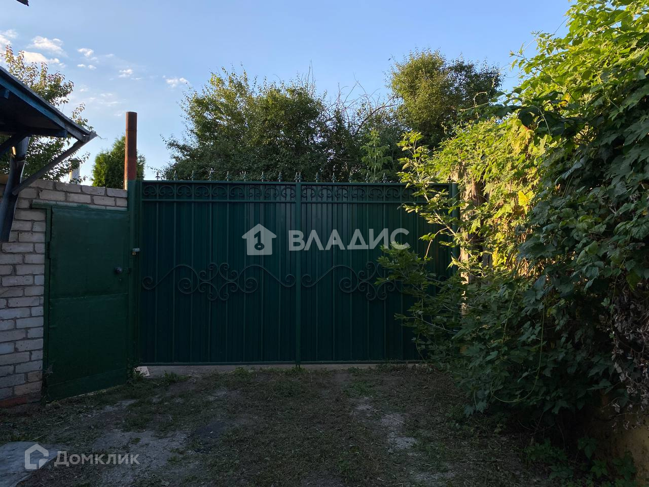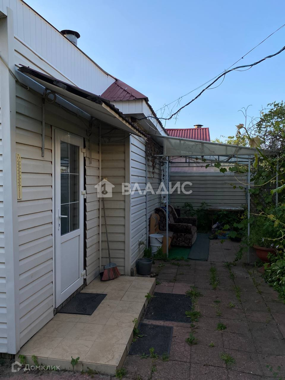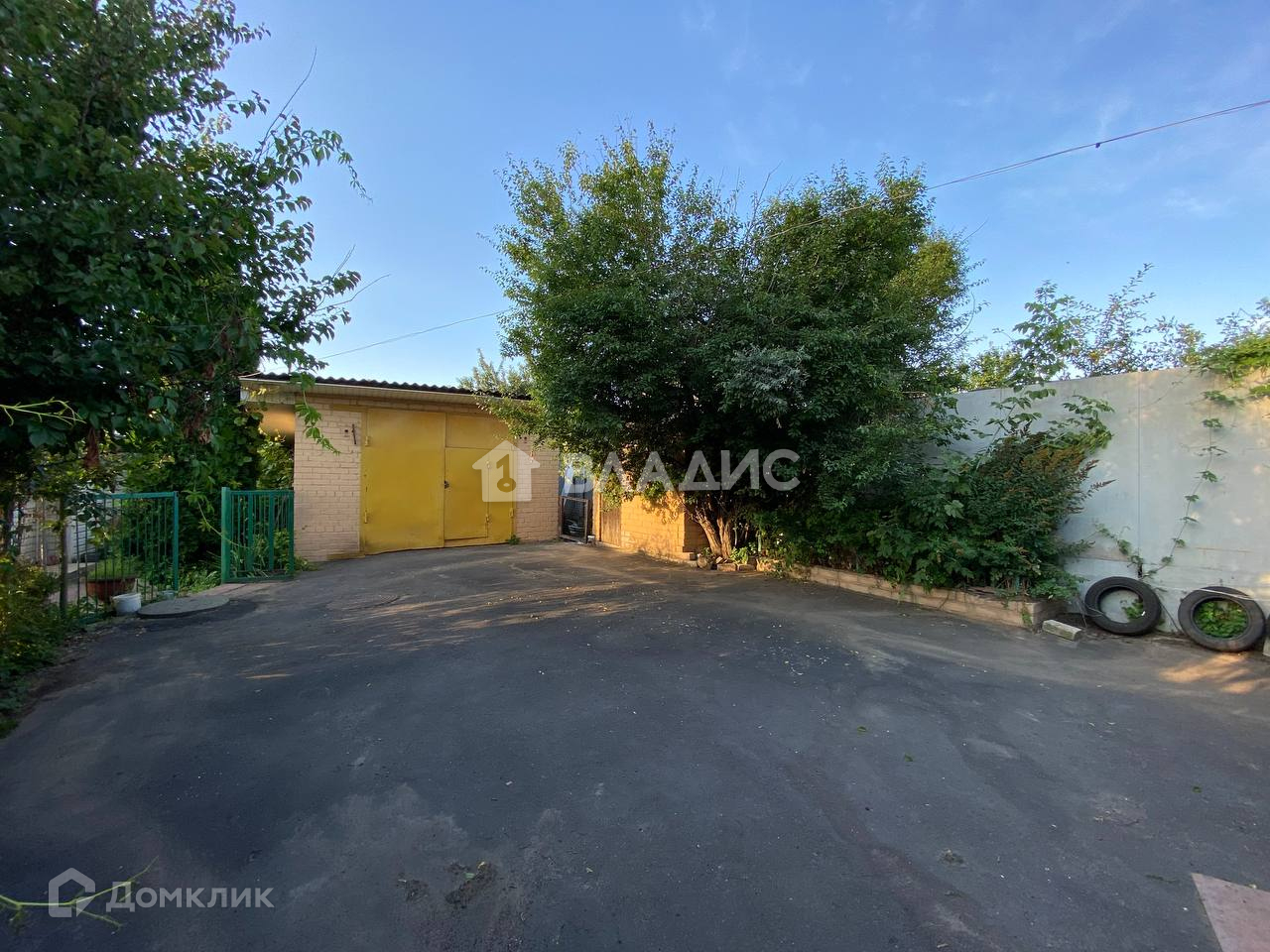 Придомовая территория: вход перед домом выложен плиткой; было сделано зонирование участка на небольшой огород и зону отдыха; перед домом сделан навес-беседка. Также на территории расположены кирпичный гараж со смотровой ямой и хозпостройки. Перед гаражом оборудована асфальтированная парковка на несколько машин.