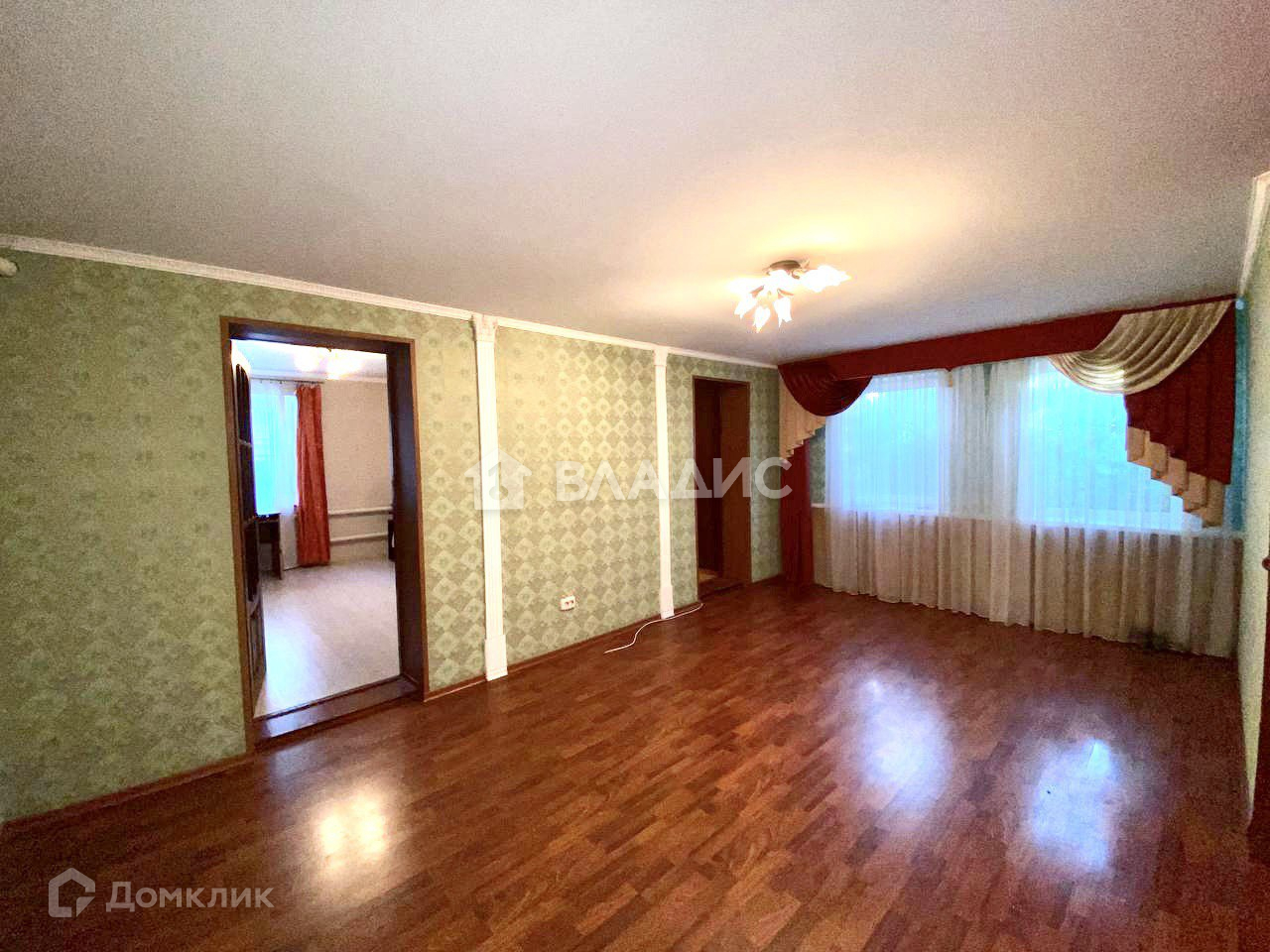 Площадь 90 м2 (3 спальни и большой зал). Сделан косметический ремонт: все окна ПВХ; на полу ламинат и линолеум; санузел совмещенный в плитке. Из мебели остается кухонный гарнитур. Можно заехать и жить без вложений.