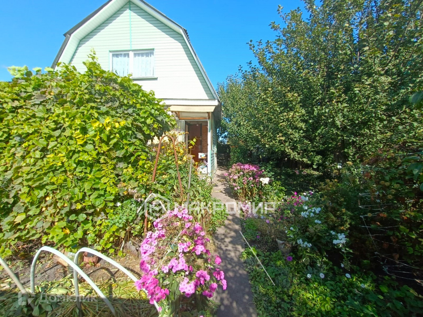 Участок дачи оформлен с любовью и заботой. Вокруг дома высажены множество цветов, которые радуют глаз своими красочными цветами. Также на участке есть множество других растений, деревьев и кустарников, создающих уютную атмосферу.