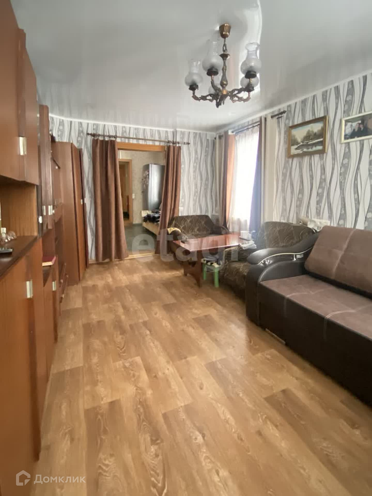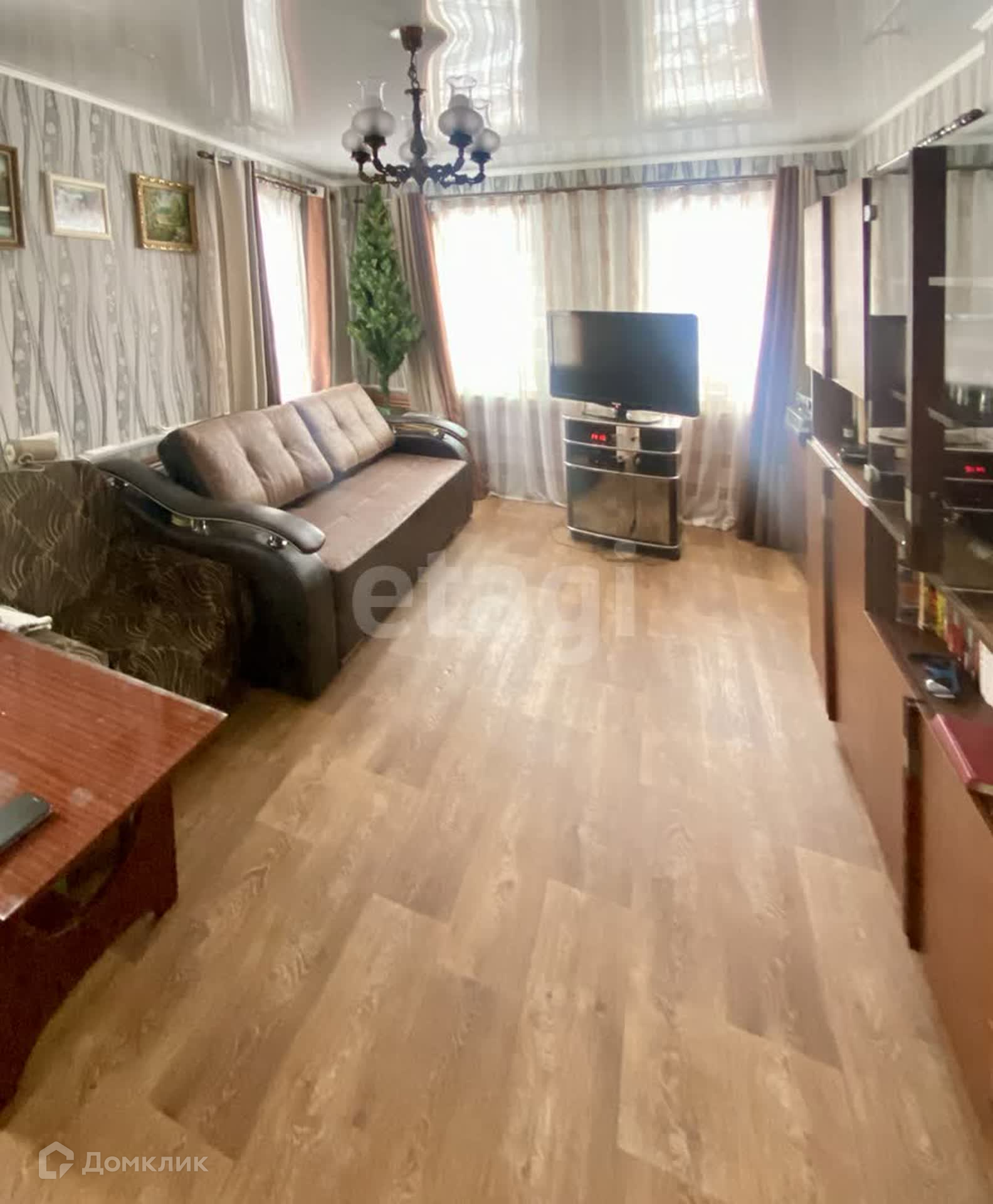 Дом бревенчатый, утеплен, отделан сайдингом, крыша двускатная, металлопрофиль. Дом теплый, отопление -газовый котёл, все коммуникации заведены, водопровод, канализация -септик, газовая колонка-автомат, установлены счетчики на воду, газ и электричество, санузел совмещенный, отделан кафелем, установлены стеклопакеты, натяжные потолки, на полу линолеум, имеется глубокий погреб. Мебель при желании покупателя остается полностью.