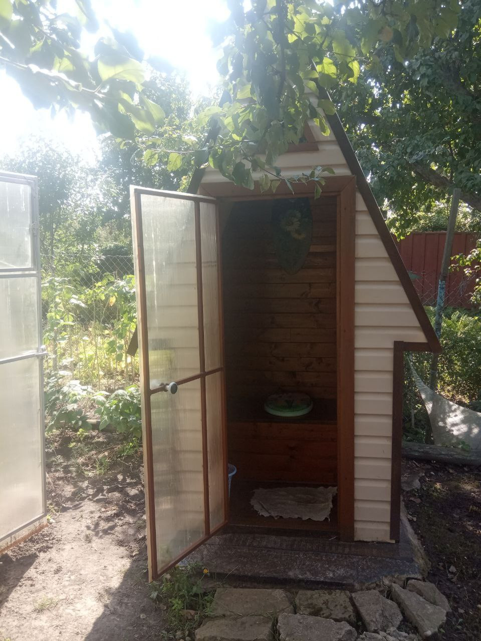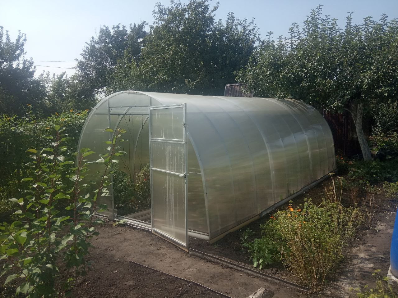 Участок: Прямоугольная форма, 12 соток. Плодовые деревья и кустарники: яблони, груши, слива, вишня, абрикос, малина, крыжовник, клубника, чёрная и белая смородина, виноград, большое количество цветов (тюльпаны, пионы, розы, ирисы, лилии - клумба всегда в цветах, т.к.время цветения у цветов разное). На участке теплица из полипропилена, летний душ, туалет, старый дачный домик, сарай, под сараем подвал. Земля на участке - чернозем. На участок подведена вода из скважины с подачей в летний сезон. Территория участка ограждена забором. Калитка с одной стороны и ворота для автомобиля с другой.