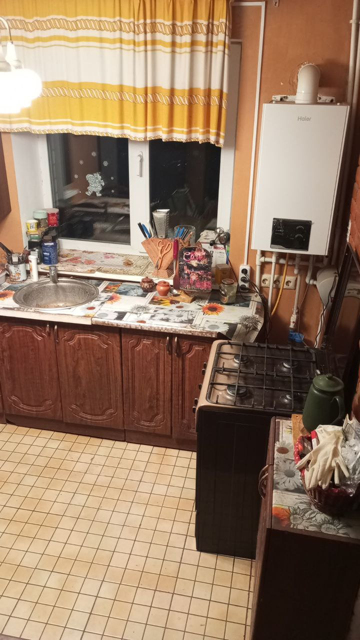 Коммуникации: Отопление и подогрев пола первого этажа от двух контурного котла. Газ, электричество, вода - городские (круглогодично). Канализация - сливная яма.