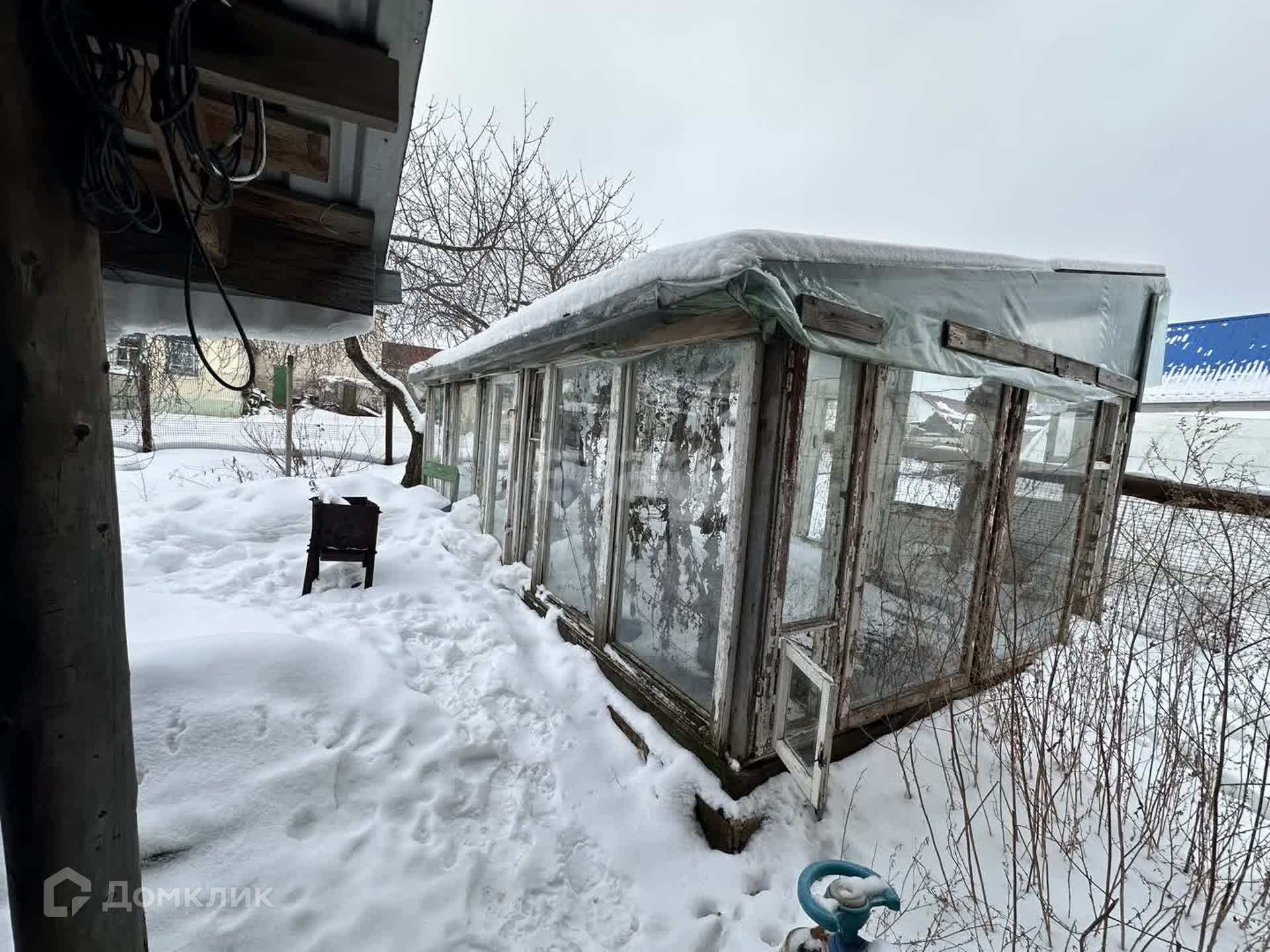 На участке крупная плодоносная черешня, красная смородина и клубника, есть большая теплица. А со стороны улицы перед воротами виноград создающий беседку, так же яблоня, вишня и слива. В перспективе планировали поставить навес для автомобилей.
