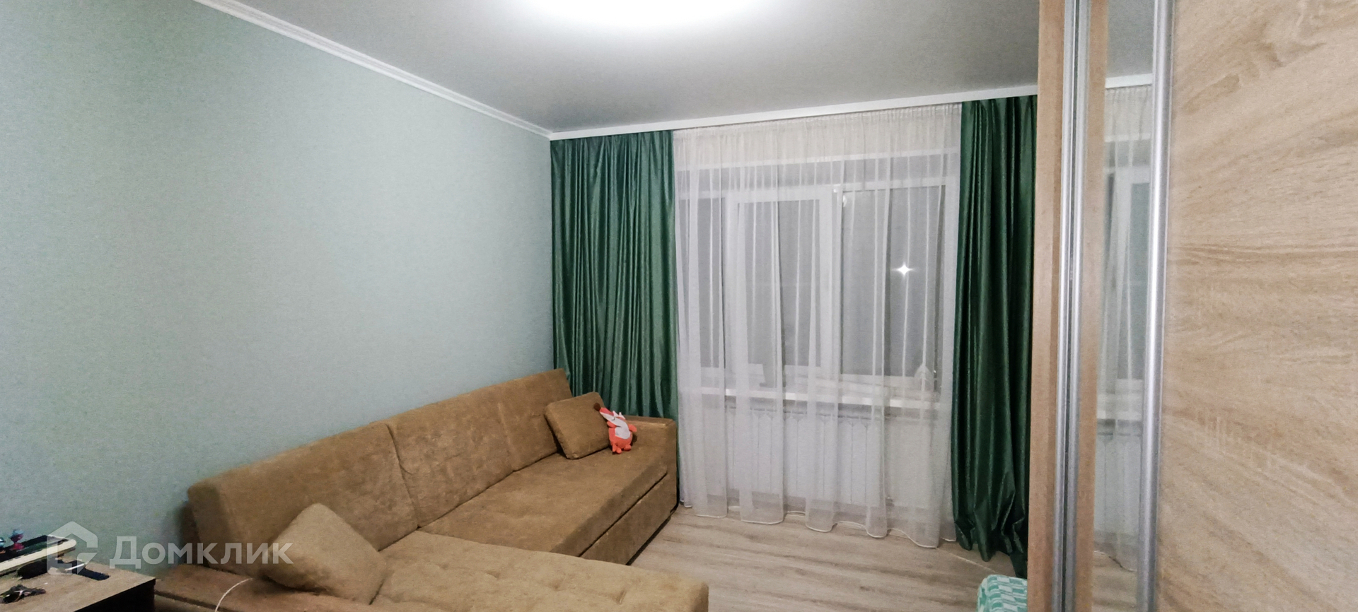 Комната имеет правильную форму, не узкая , что позволяет удобно разместить мебель!