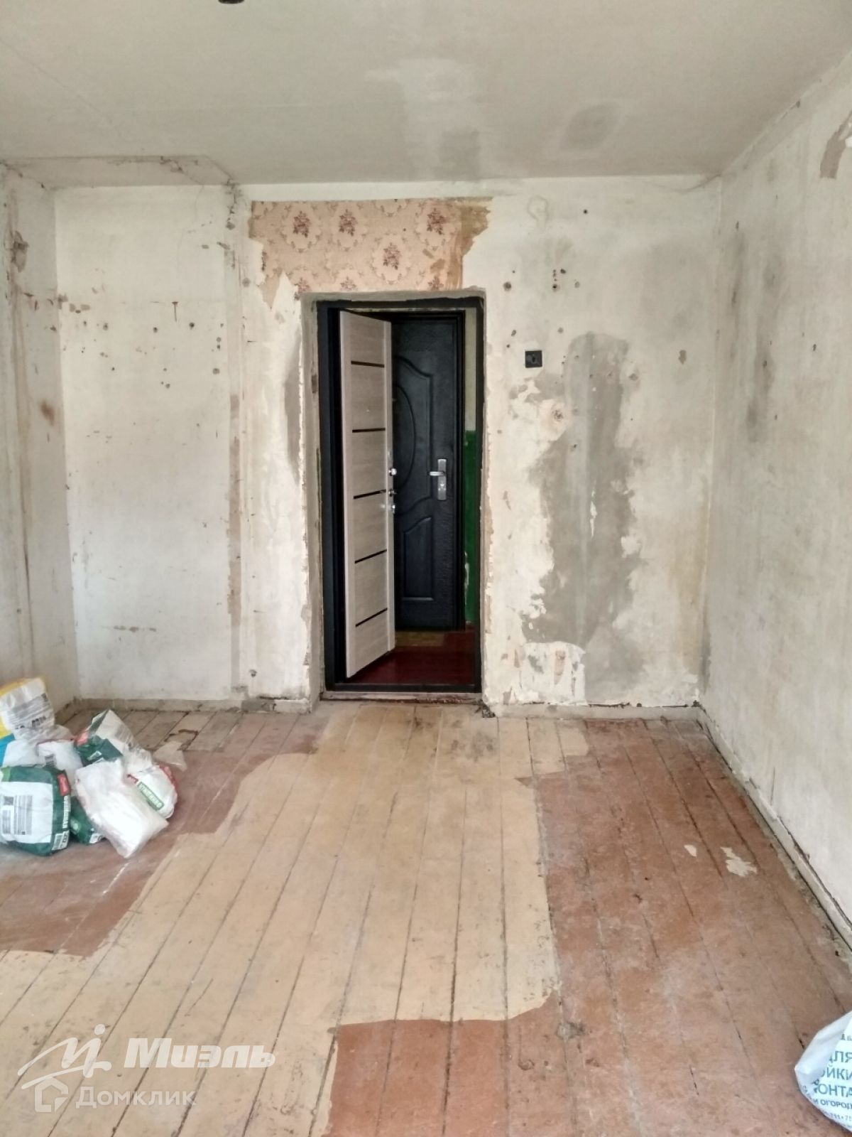 В комнате новая дверь-сейф и окно ПВХ. Комната подготовлена под ремонт.