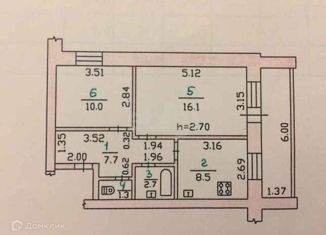 Продаю 2-ком. квартиру, 51.1 м2, улица Матросова, 50
